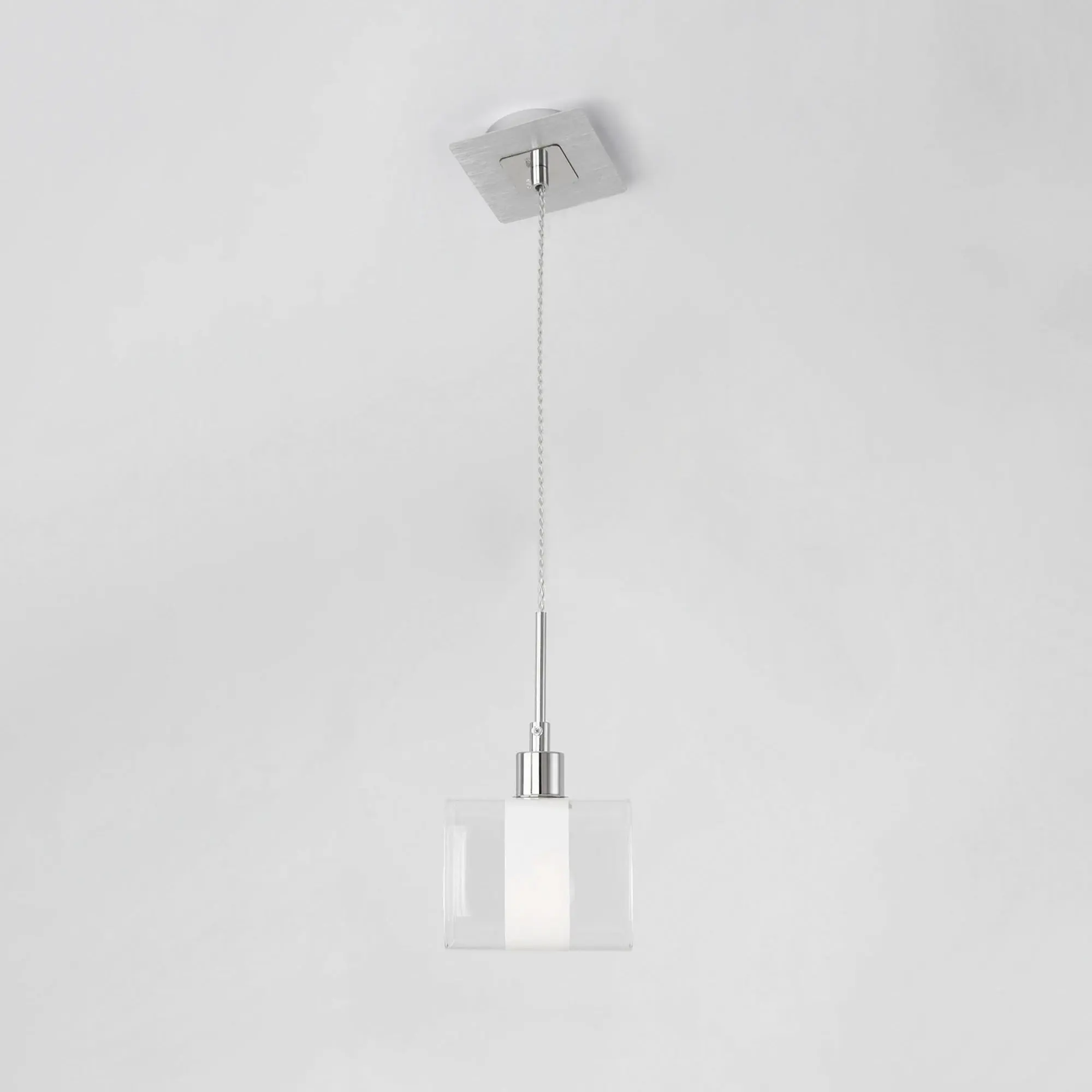 Подвесной светильник в современном стиле Citilux Вирта CL139010. Основание металлическое, цвет алюминий с декоративными хромированными элементами. Плафон из прозрачного стекла со стильной белой полосой. В светильнике используется 1 лампа с цоколем Е14, форма колбы шарик, максимальной мощностью для ламп накаливания 60Вт (В комплект не входит приобретается отдельно). Модель подходит для всех типов потолков, в том числе натяжных. Тип крепления – планка. Высота легко регулируется при установке. Подвесной светильник Citilux Вирта CL139010 великолепно выглядит над стойкой бара в зоне стола или над прикроватной тумбочкой