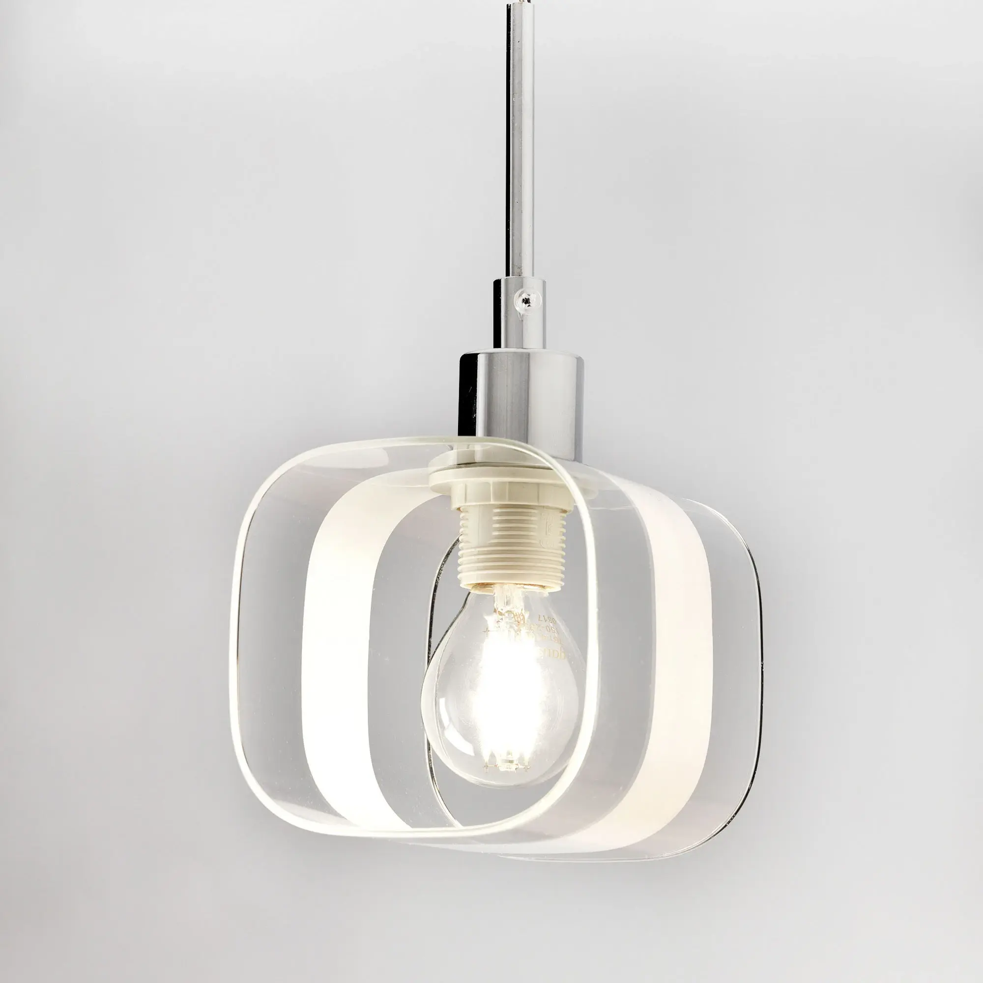Подвесной светильник в современном стиле Citilux Вирта CL139012. Основание металлическое, цвет чёрный с декоративными хромированными элементами. Плафон из прозрачного стекла со стильной белой полосой. В светильнике используется 1 лампа с цоколем Е14, форма колбы шарик, максимальной мощностью для ламп накаливания 60Вт (В комплект не входит приобретается отдельно). Модель подходит для всех типов потолков, в том числе натяжных. Тип крепления – планка. Высота легко регулируется при установке. Подвесной светильник Citilux Вирта CL139012 великолепно выглядит над стойкой бара в зоне стола или над прикроватной тумбочкой