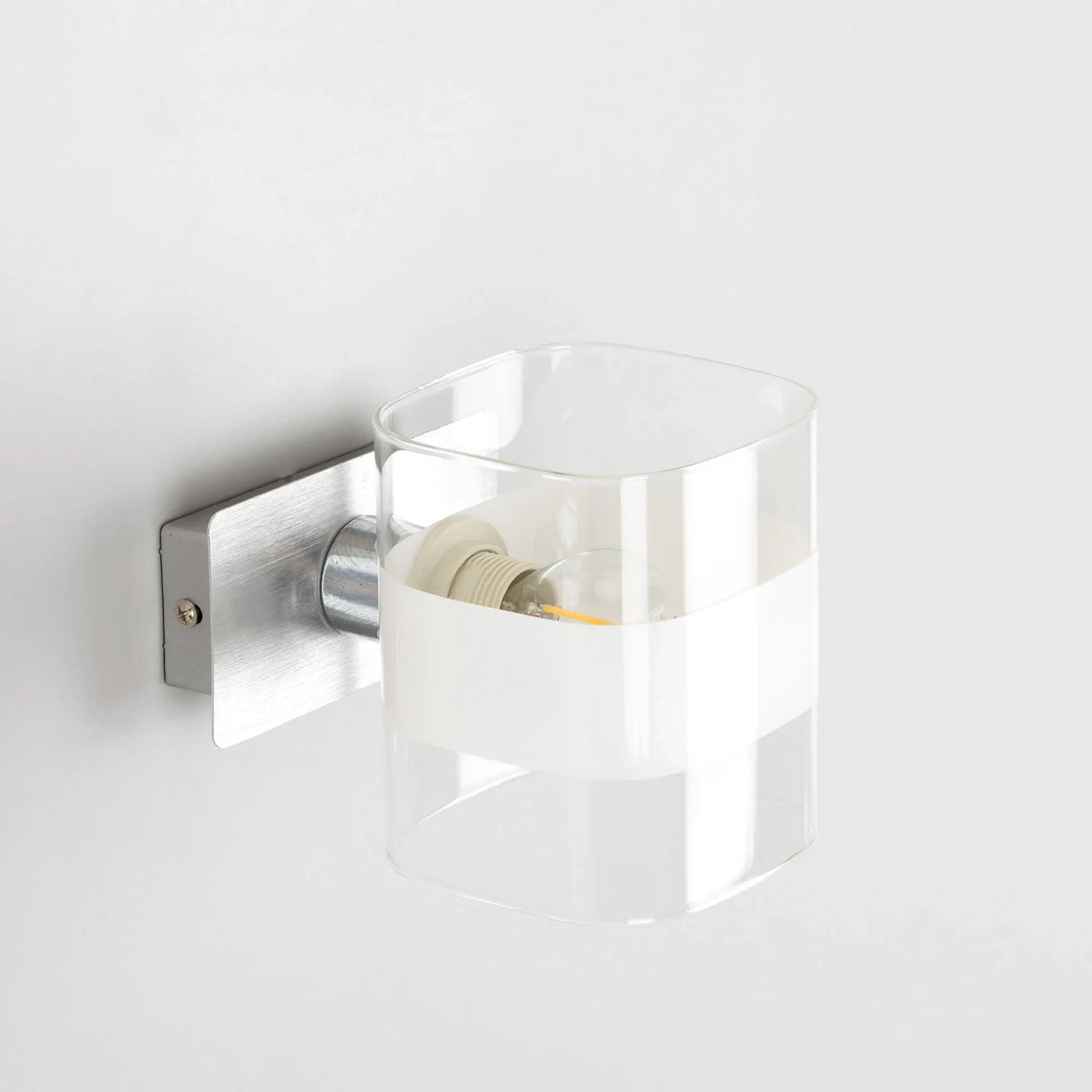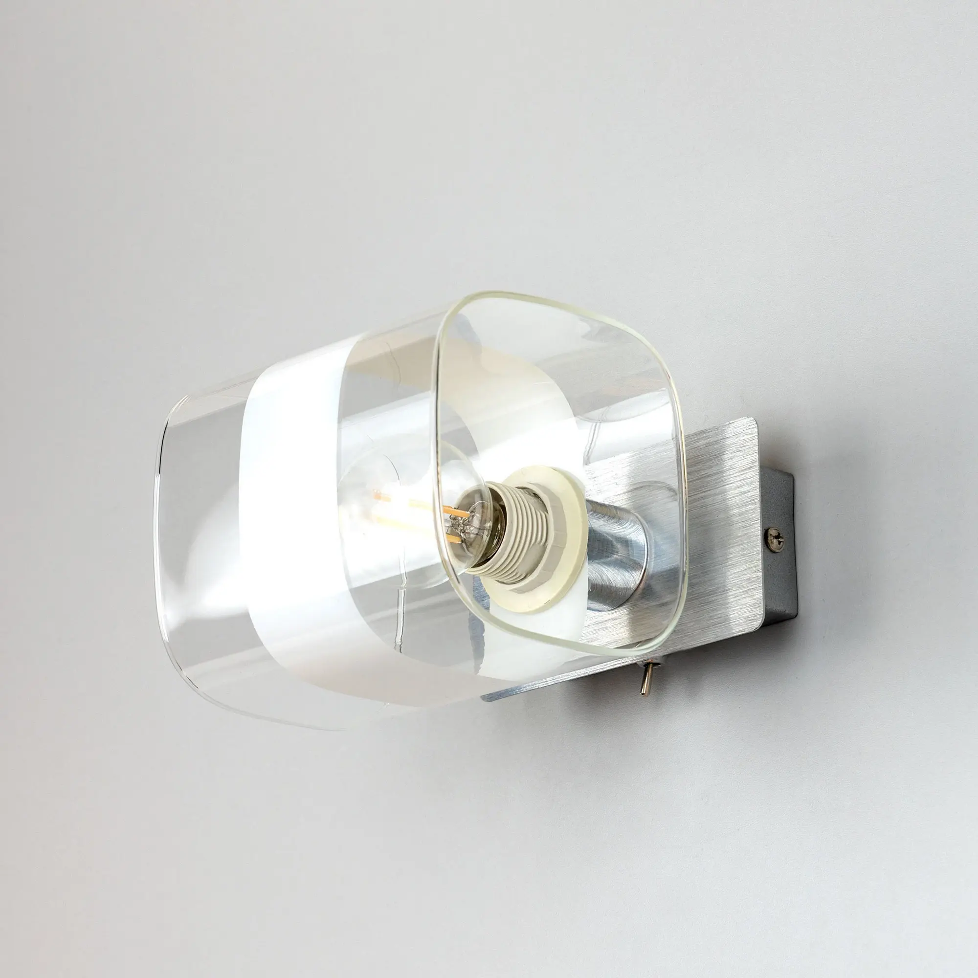 Настенный светильник в современном стиле Citilux Вирта CL139310. Основание металлическое, прямоугольной формы, цвет алюминий с декоративными хромированными элементами. Плафон из прозрачного стекла со стильной белой полосой. На корпусе расположен удобный выключатель. В светильнике используется 1 лампа с цоколем Е14, форма колбы шарик, максимальной мощностью для ламп накаливания 60Вт (В комплект не входит приобретается отдельно). Тип крепления изделия к стене – планка.,