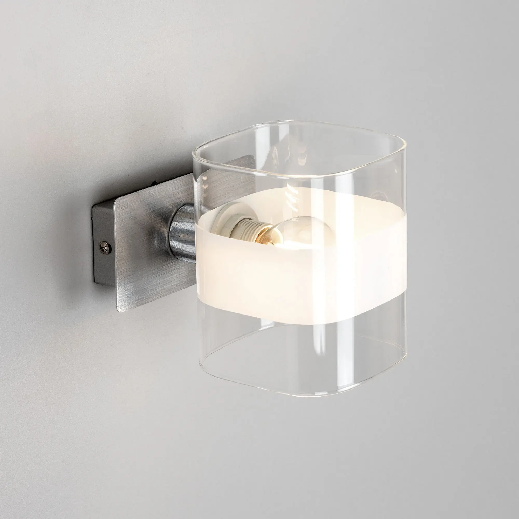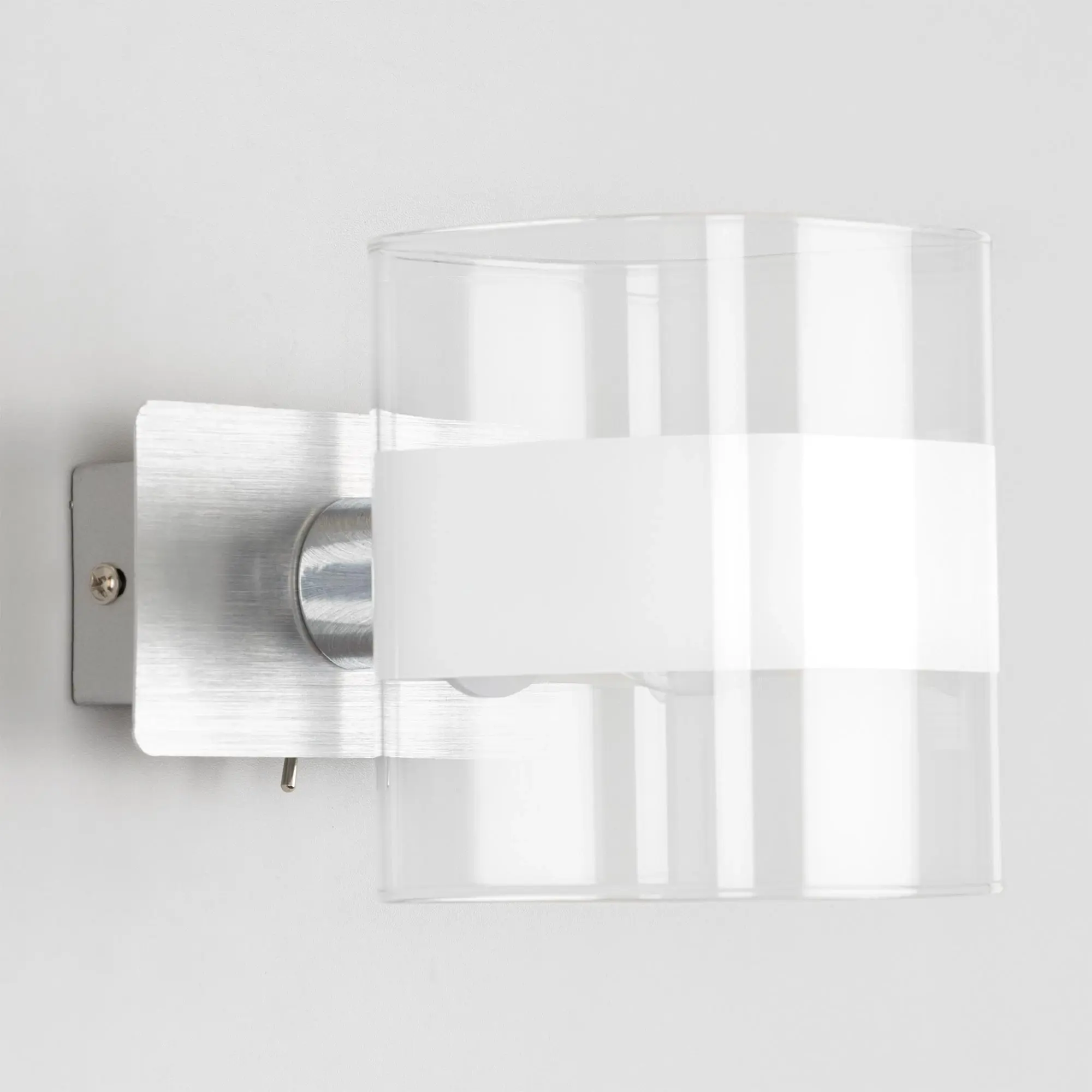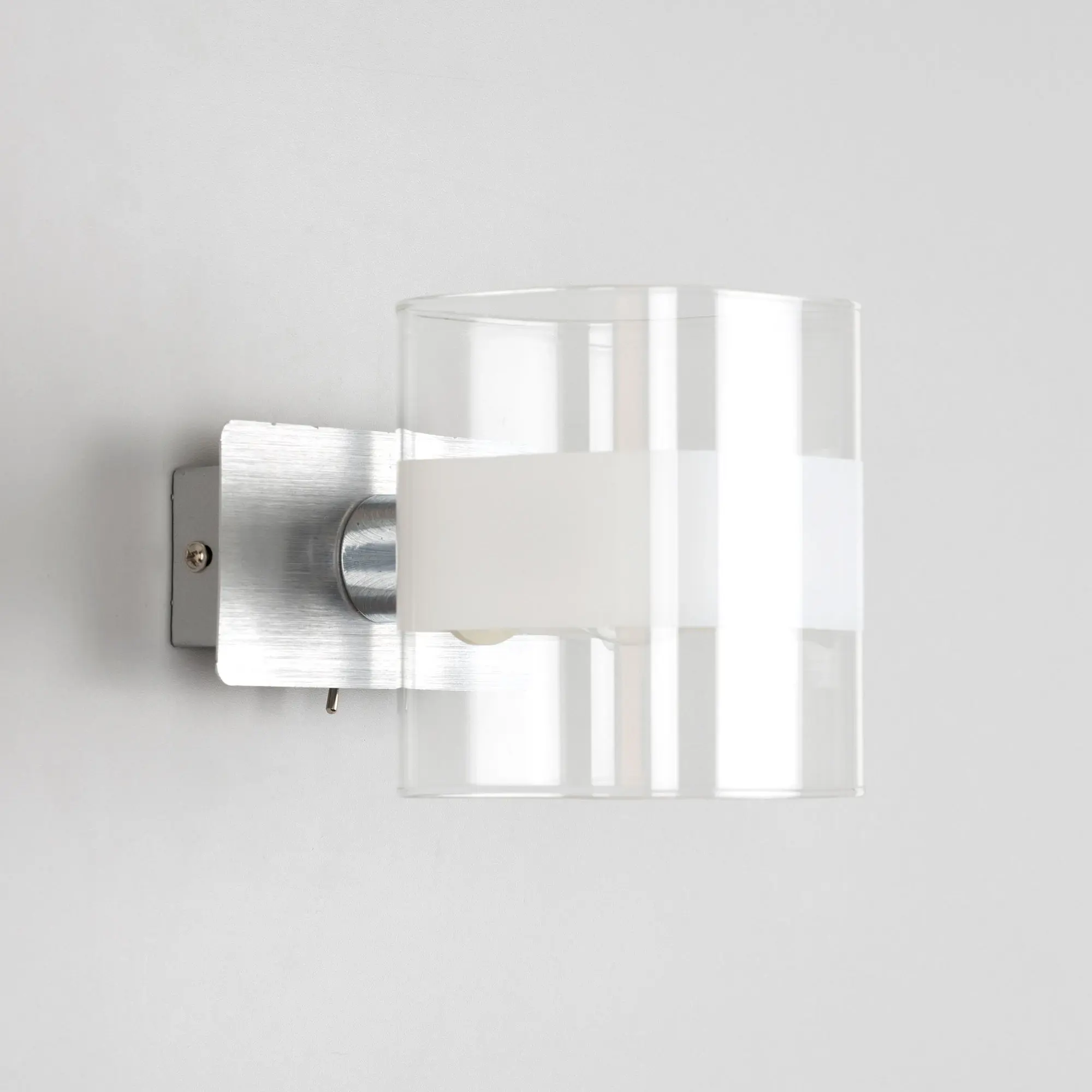 Настенный светильник в современном стиле Citilux Вирта CL139310. Основание металлическое, прямоугольной формы, цвет алюминий с декоративными хромированными элементами. Плафон из прозрачного стекла со стильной белой полосой. На корпусе расположен удобный выключатель. В светильнике используется 1 лампа с цоколем Е14, форма колбы шарик, максимальной мощностью для ламп накаливания 60Вт (В комплект не входит приобретается отдельно). Тип крепления изделия к стене – планка,