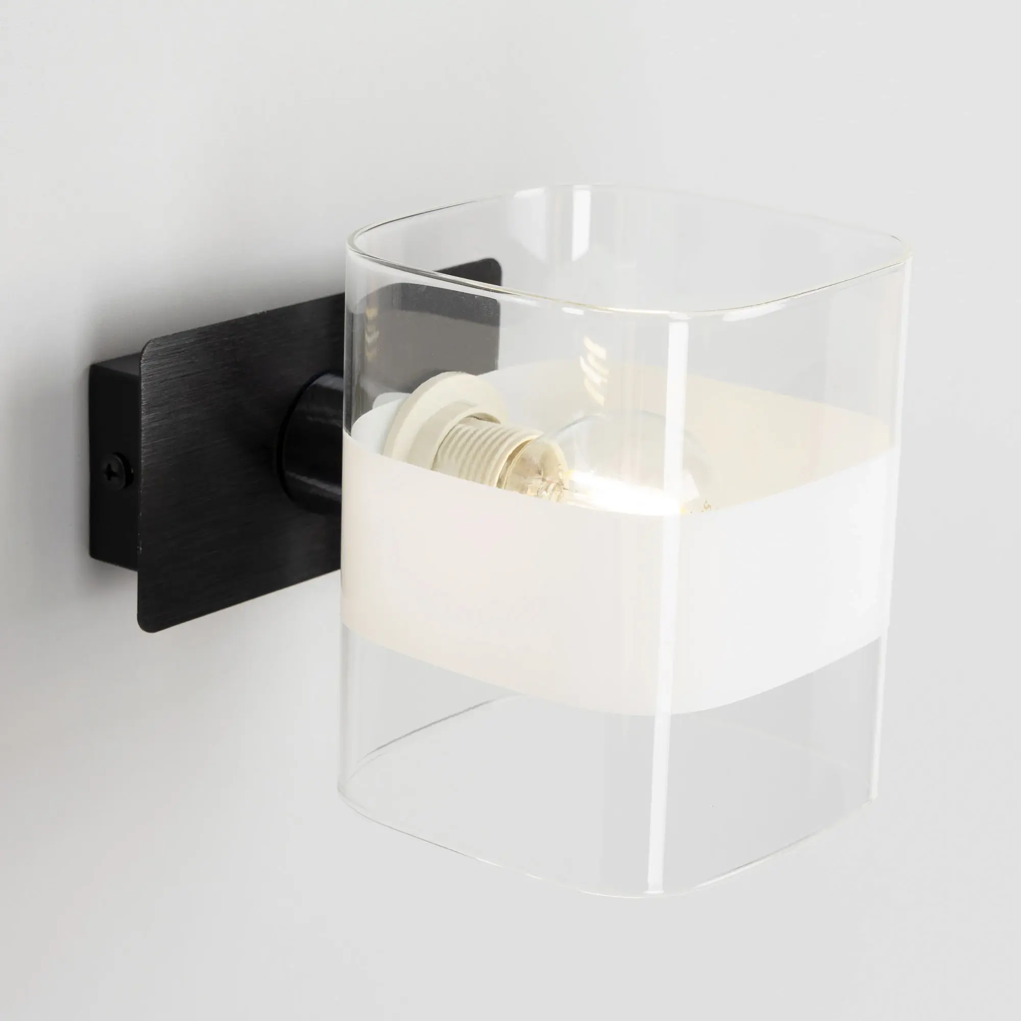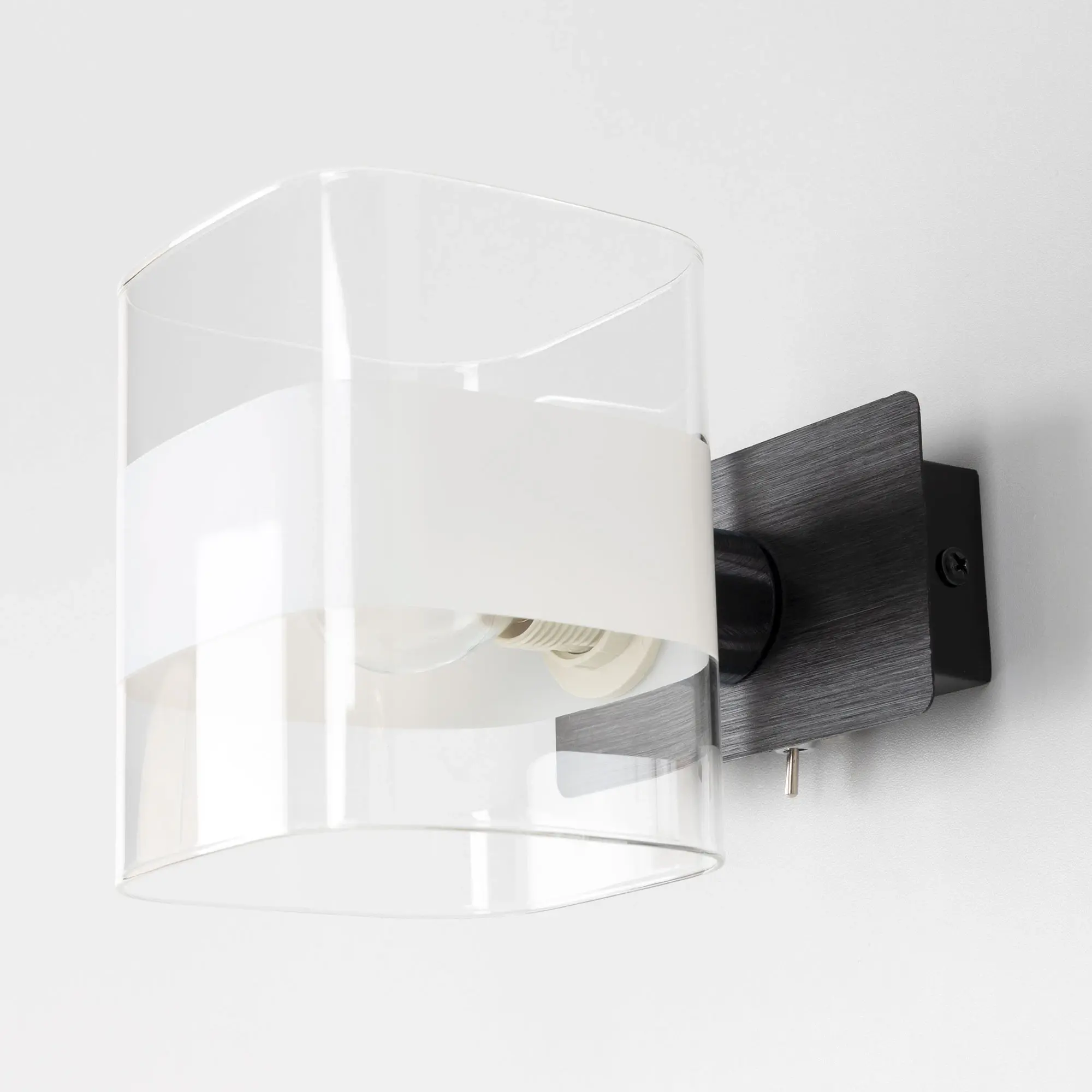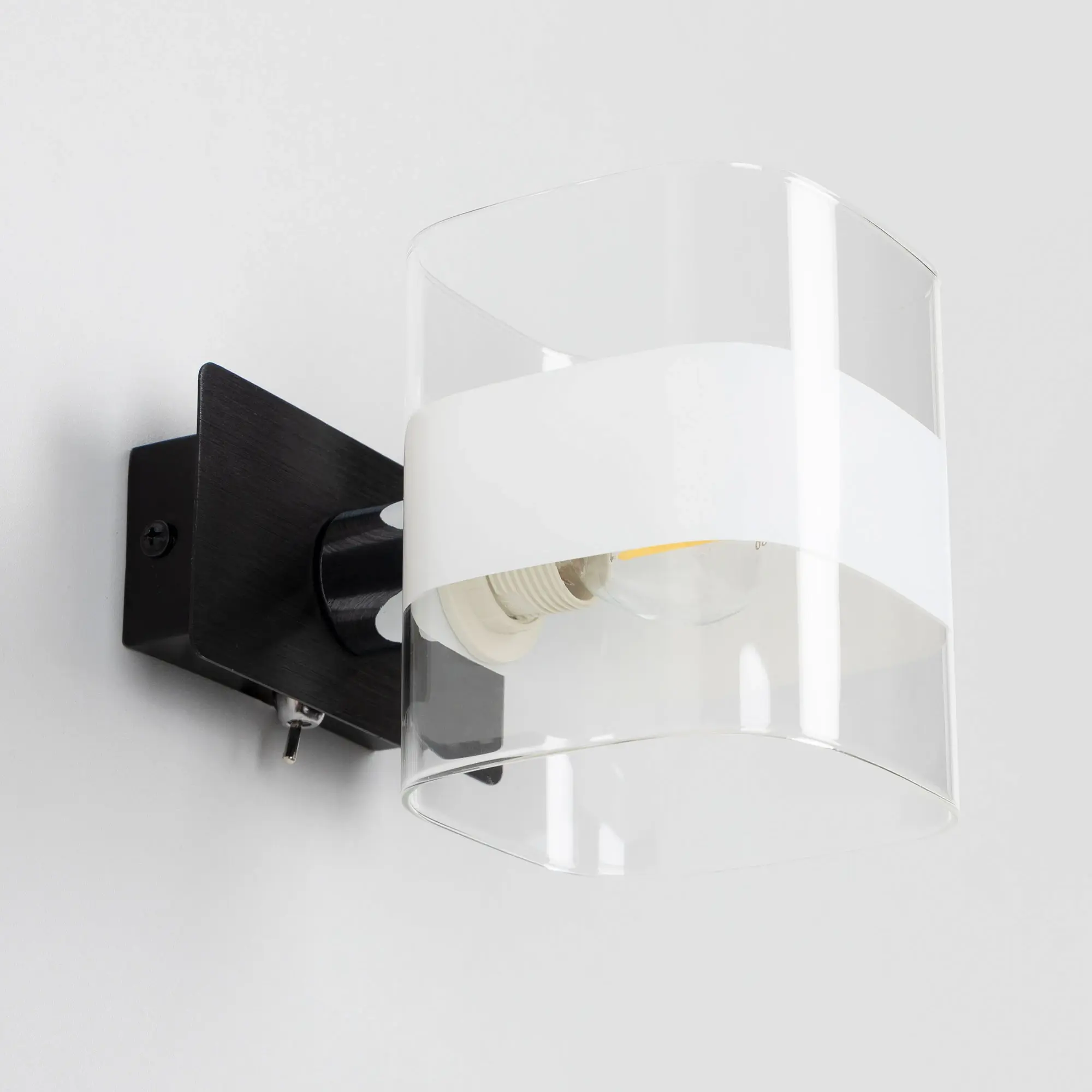 Настенный светильник в современном стиле Citilux Вирта CL139312. Основание металлическое, прямоугольной формы, цвет чёрный с декоративными хромированными элементами. Плафон из прозрачного стекла со стильной белой полосой. На корпусе расположен удобный выключатель. В светильнике используется 1 лампа с цоколем Е14, форма колбы шарик, максимальной мощностью для ламп накаливания 60Вт (В комплект не входит приобретается отдельно). Тип крепления изделия к стене – планка.,