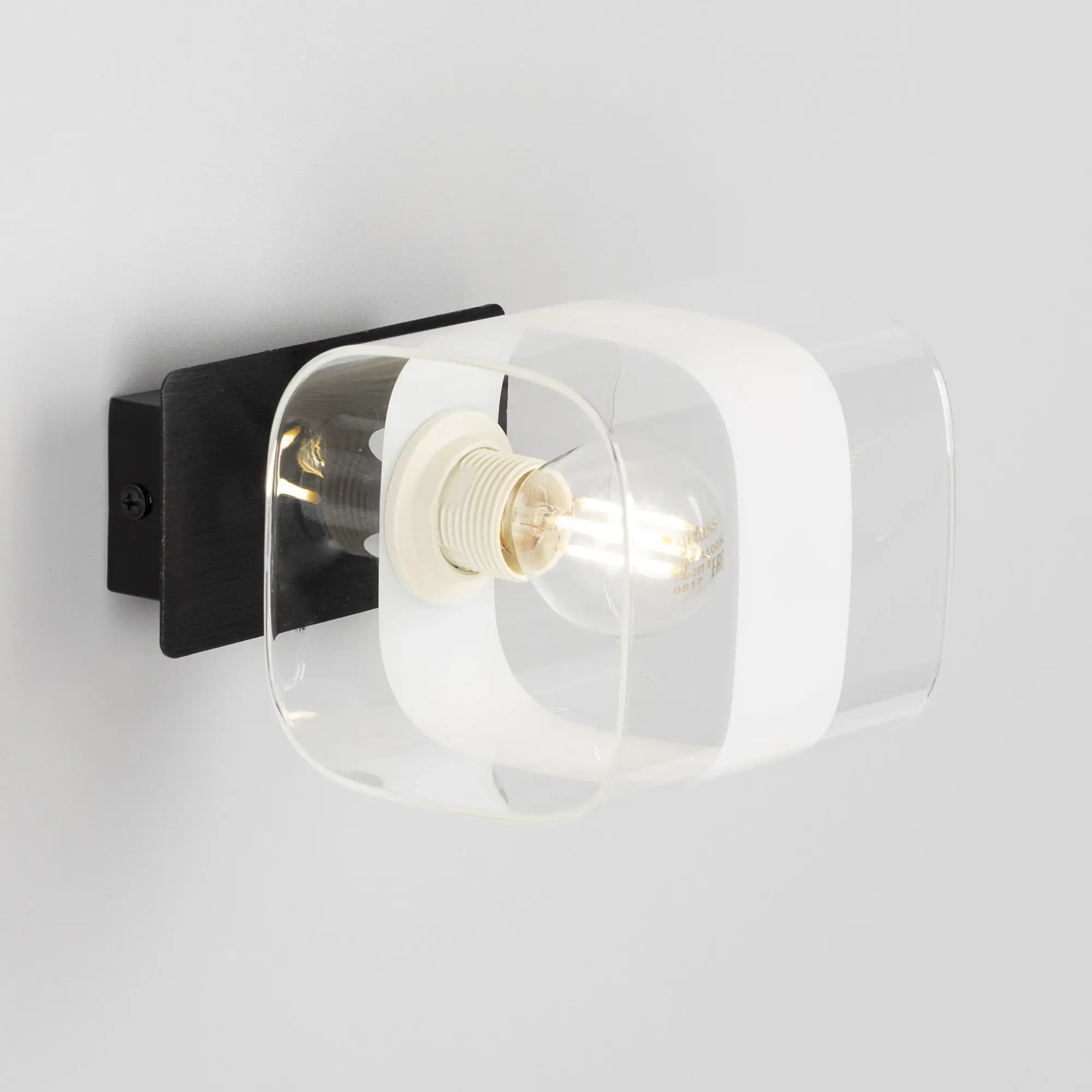 Настенный светильник в современном стиле Citilux Вирта CL139312. Основание металлическое, прямоугольной формы, цвет чёрный с декоративными хромированными элементами. Плафон из прозрачного стекла со стильной белой полосой. На корпусе расположен удобный выключатель. В светильнике используется 1 лампа с цоколем Е14, форма колбы шарик, максимальной мощностью для ламп накаливания 60Вт (В комплект не входит приобретается отдельно). Тип крепления изделия к стене – планка.