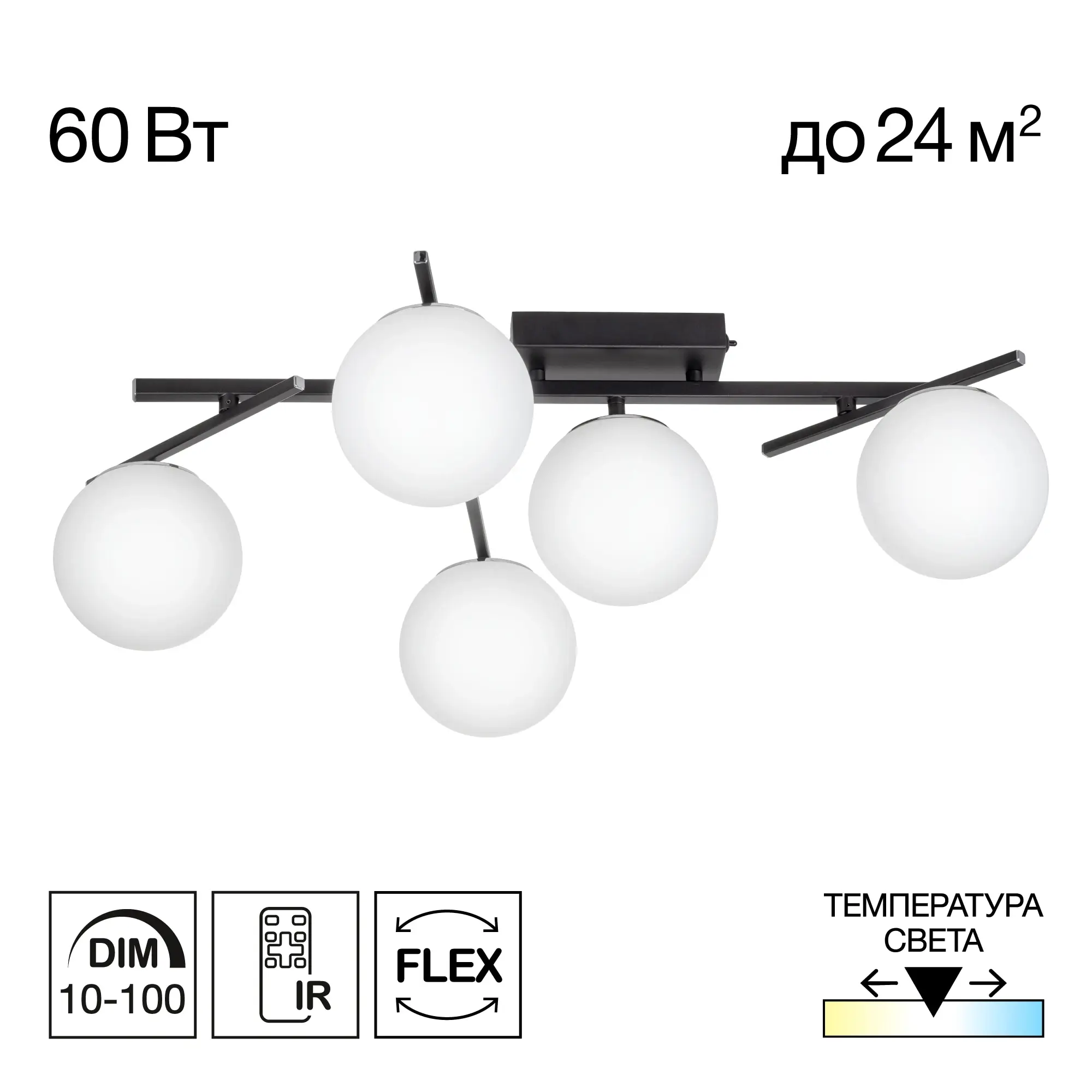 Преобразите ваш интерьер с потолочной светодиодной люстрой Citilux CL223152 Dorsy! Чёрное матовое покрытие с декоративными хромированными элементами добавит изысканности, а пять плафонов в форме шаров из матового оптического полимера создадут мягкое и равномерное освещение. Поворотные рожки позволят придать модели различные формы.