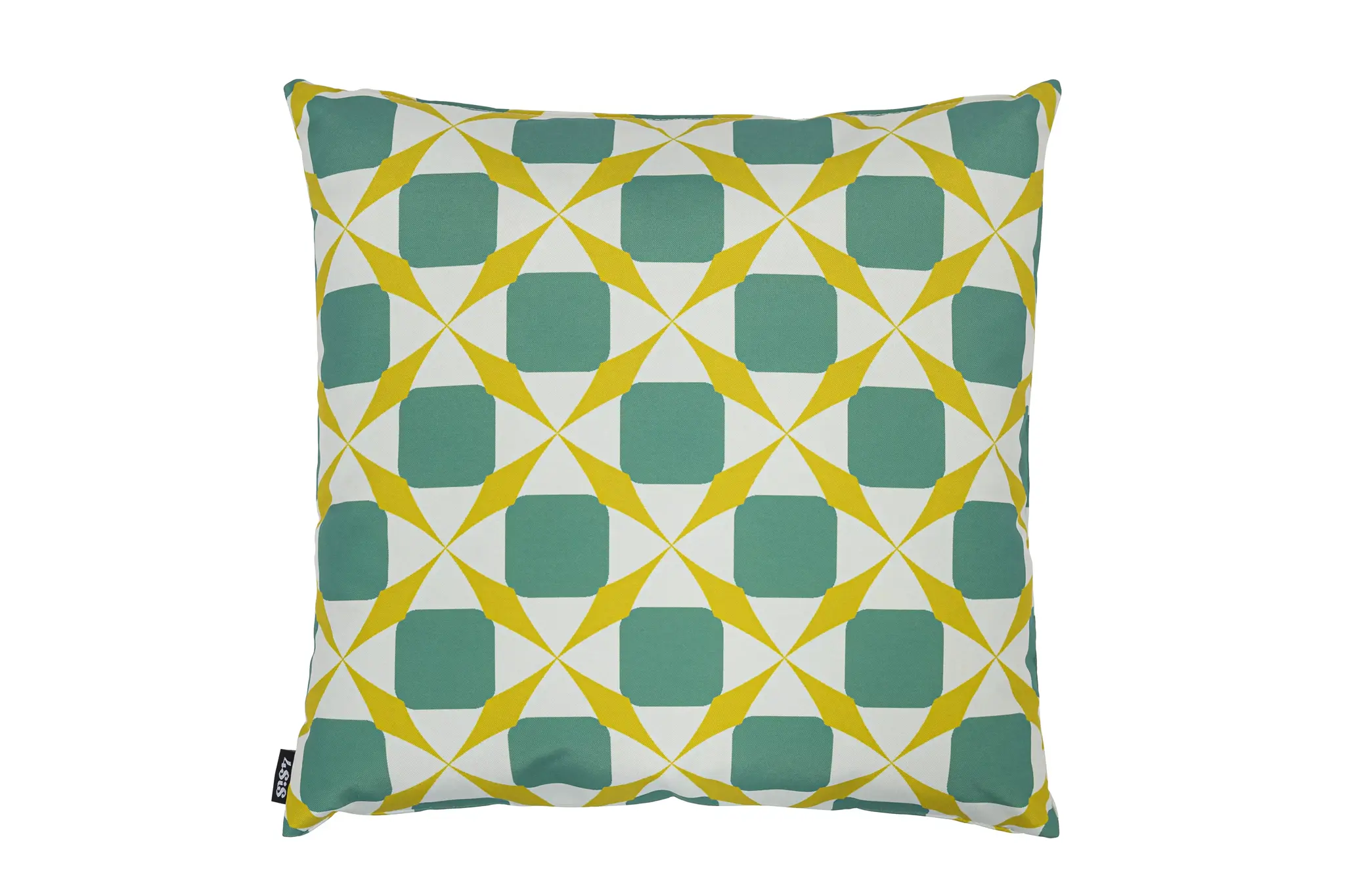 Материал подушки - полиэстер 100% с плотностью 500 г/м2 и влагоотталкивающей пропиткой, благодаря чему подушка устойчива к забрызгиванию жидкостью и имеют более длительный срок эксплуатации.