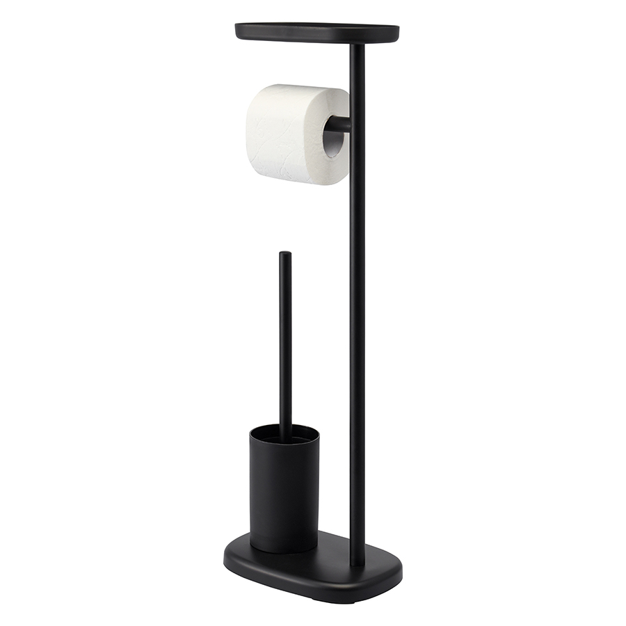 Держатель для туалетной бумаги с полочкой и ершиком Slim, черный
