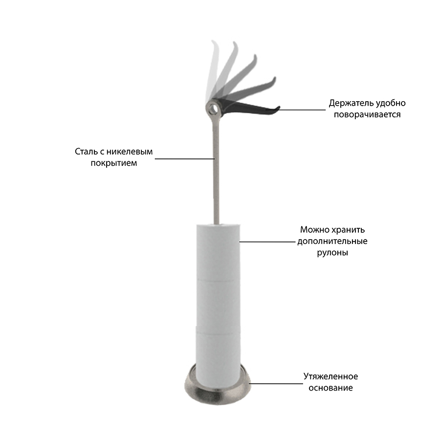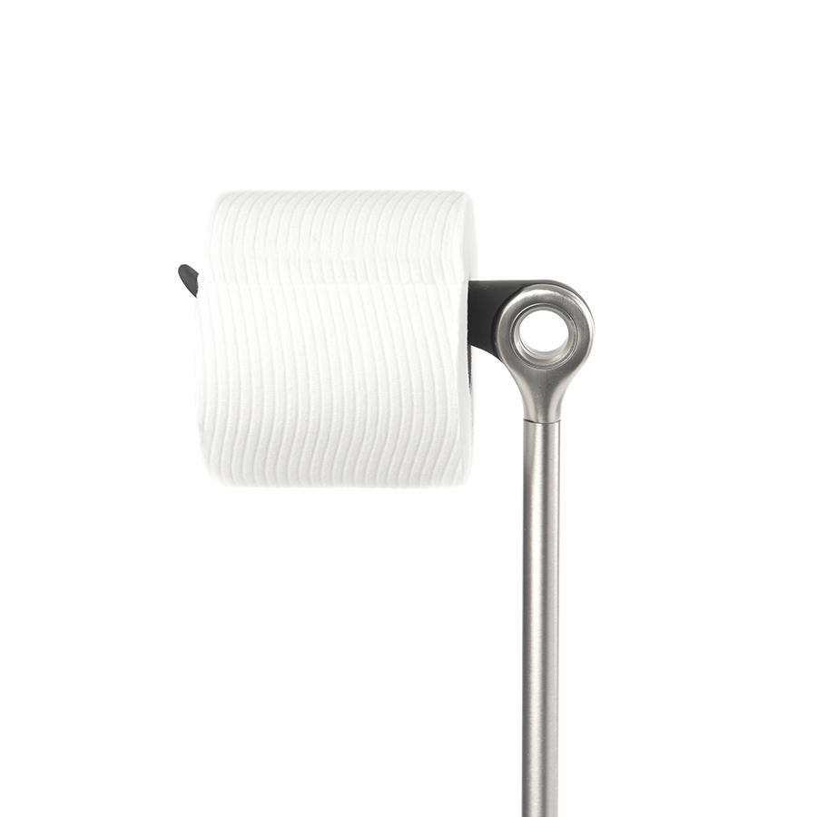По всей длине держателя можно разместить до 5 запасных рулонов, а на верхнюю крутящуюся перекладину повесить шестой, используемый в настоящий момент.