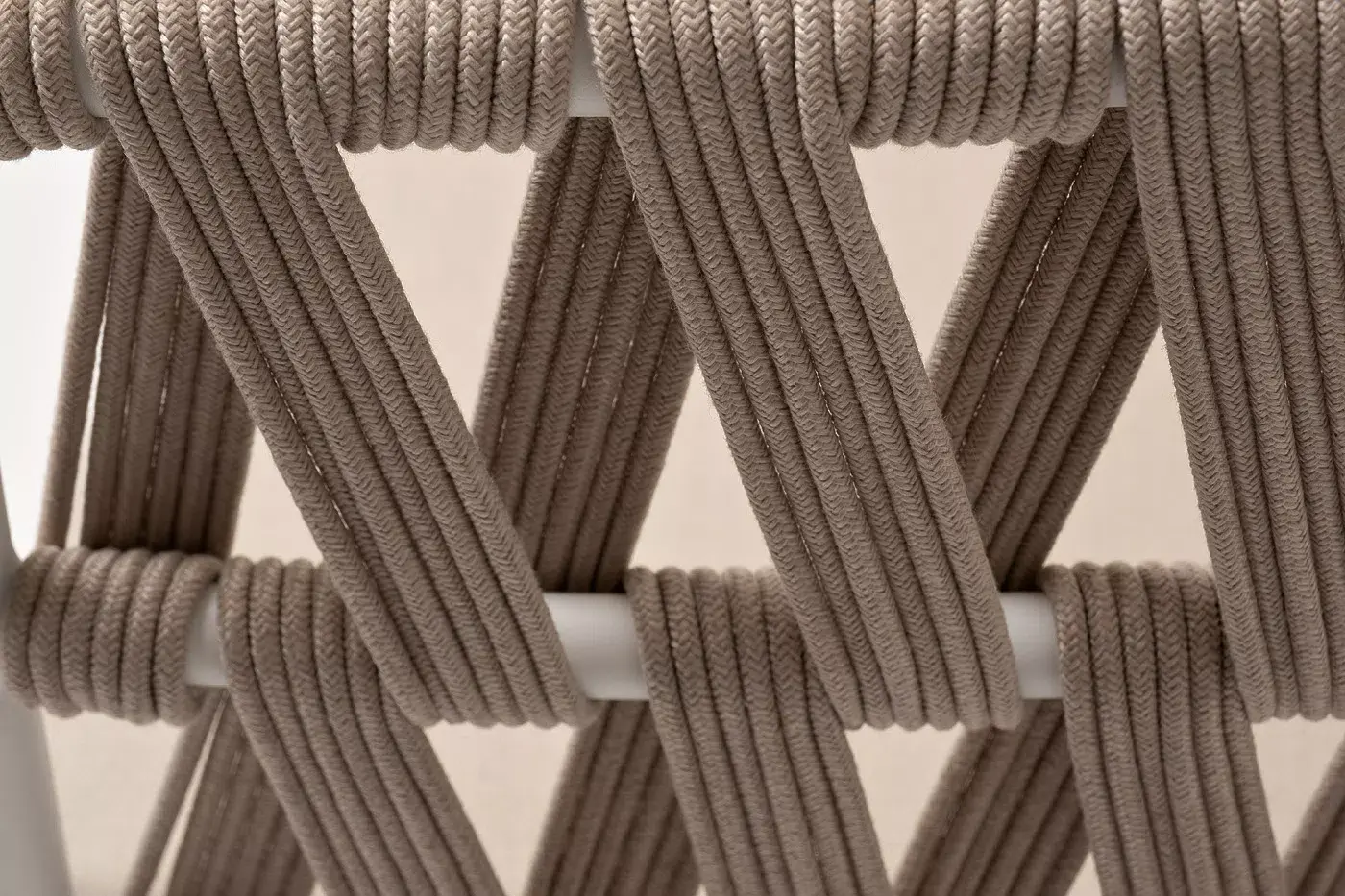 Боковины каркаса вручную оплетены роупом - эластичными синтетическими лентами, изготовленными из высокопрочных полиэфирных волокон. Цвет оплетки - бежевый.