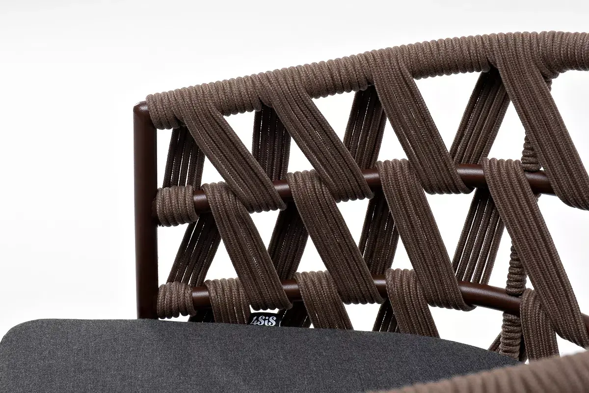 Каркас вручную оплетен коричневым (RAL8016) роупом - эластичными синтетическими лентами из высокопрочных полиэфирных волокон.