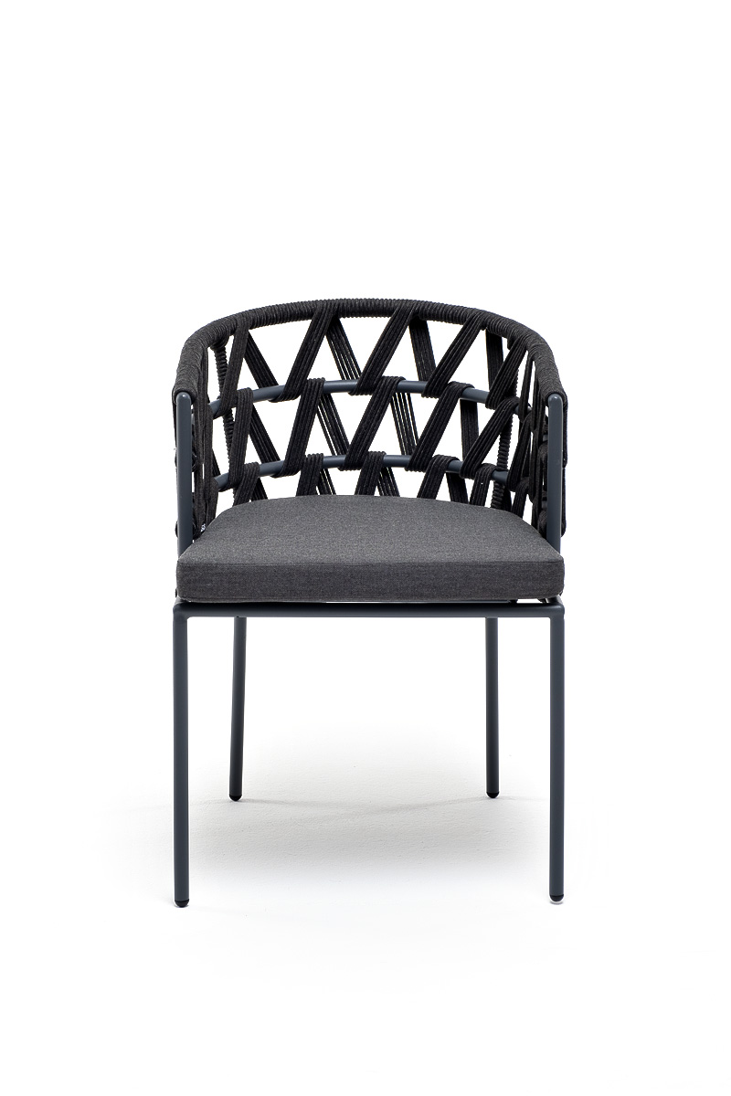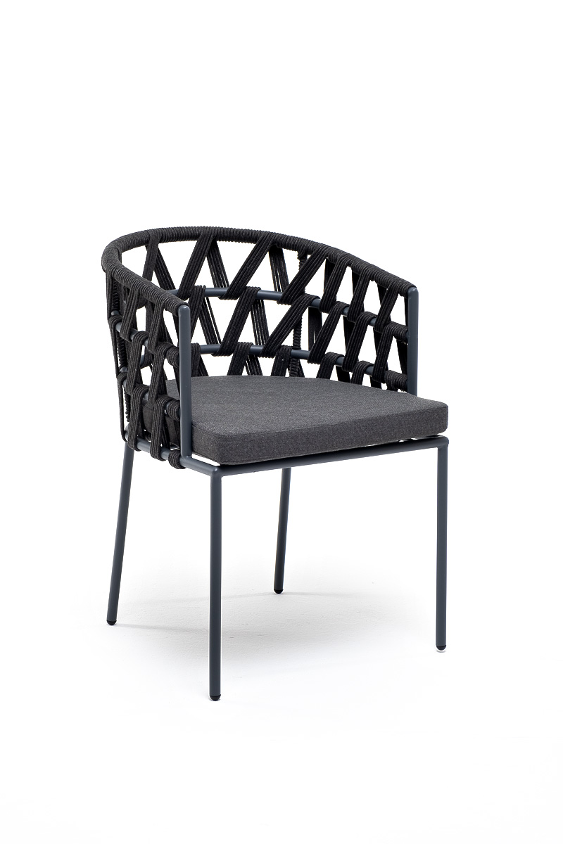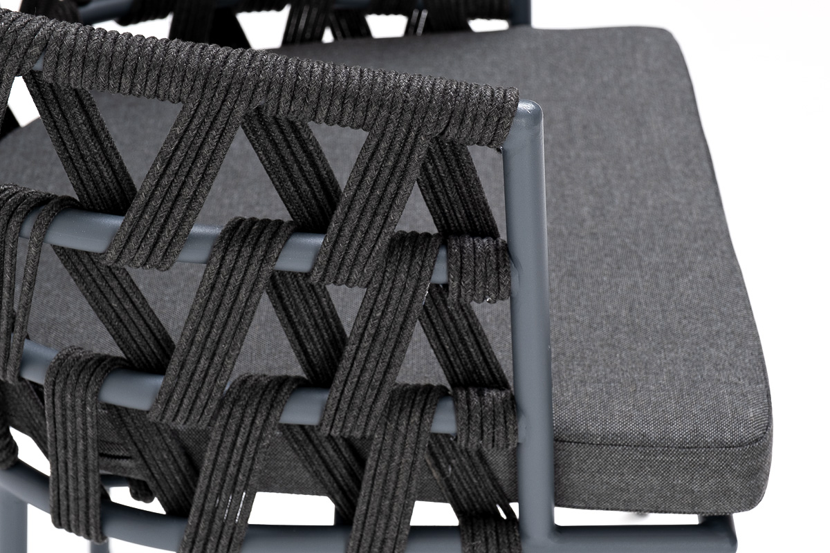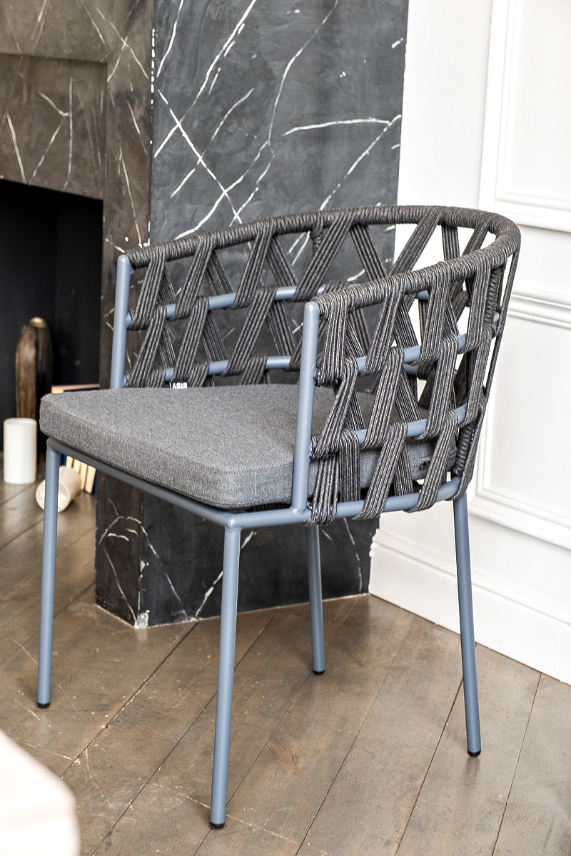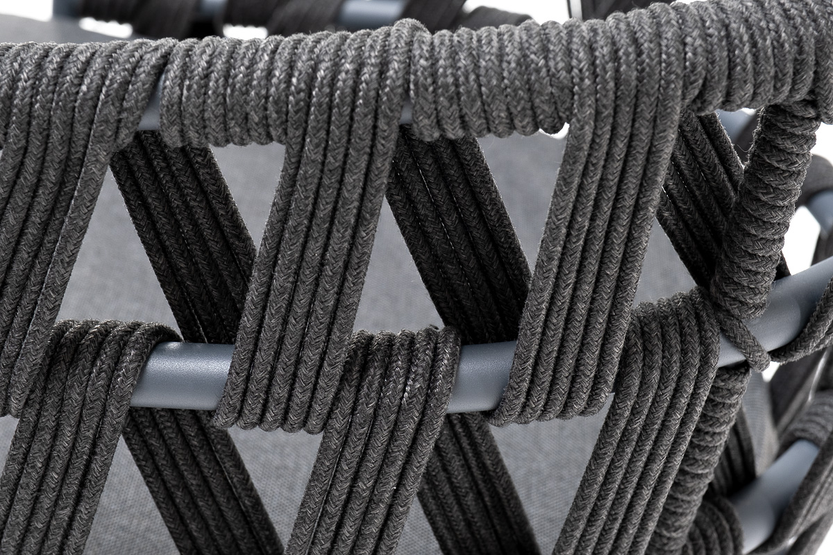 Каркас вручную оплетен темно-серым роупом - эластичными синтетическими лентами из высокопрочных полиэфирных волокон.