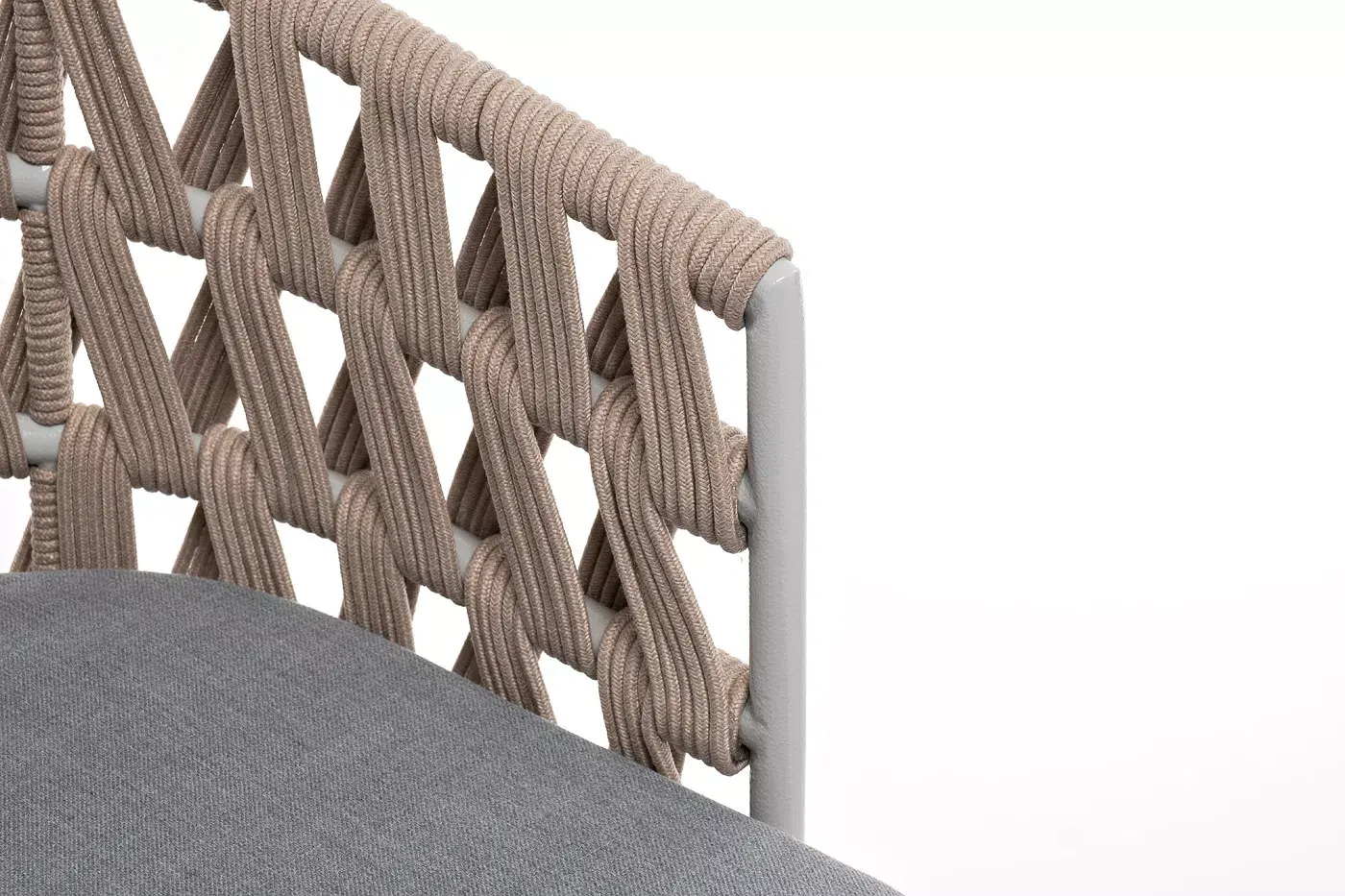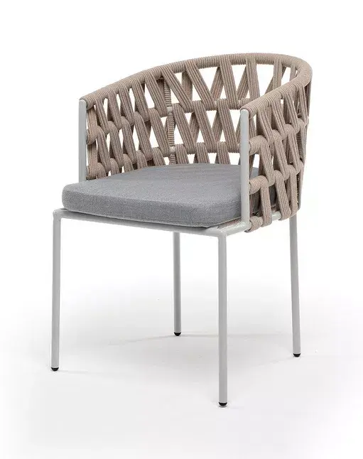 Каркас вручную оплетен бежевым роупом - эластичными синтетическими лентами из высокопрочных полиэфирных волокон.