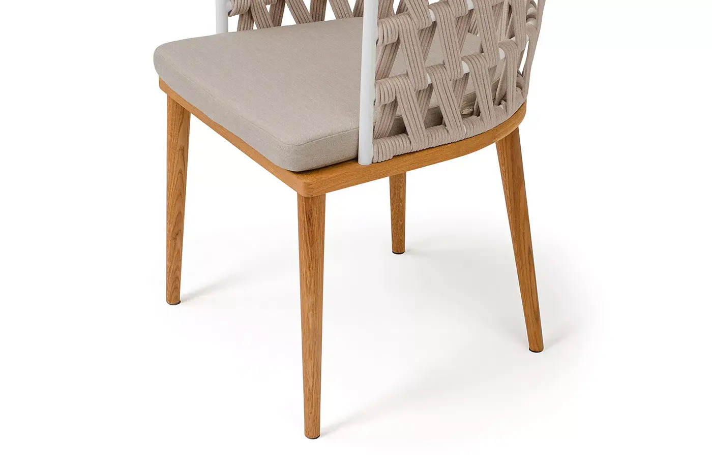 Плетеный стул «Диего» представляет собой удобное и стильное решение для дома или сада. Изготовленный из прочного дубового каркаса и оплетки из роупа бежевого цвета, этот стул является отличным выбором для долгосрочного использования.