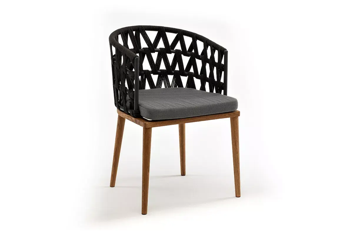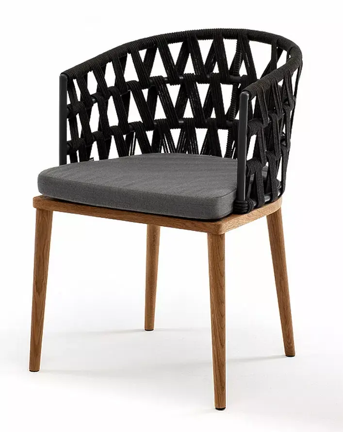 Плетеный стул «Диего» представляет собой удобное и стильное решение для дома или сада. Изготовленный из прочного дубового каркаса и оплетки из роупа темно-серого цвета, этот стул является отличным выбором для долгосрочного использования.