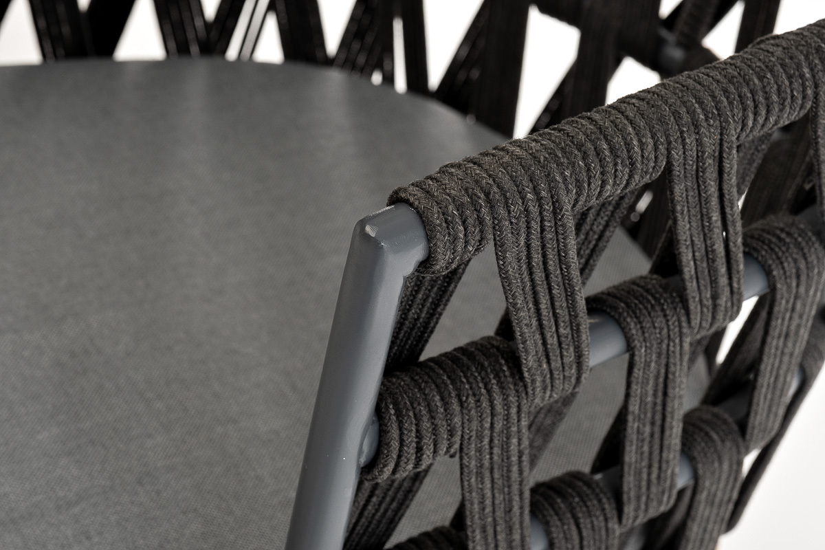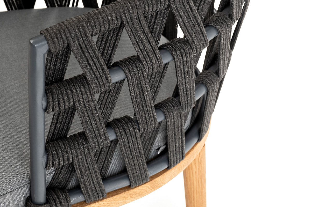 Плетеный стул «Диего» представляет собой удобное и стильное решение для дома или сада. Изготовленный из прочного дубового каркаса и оплетки из роупа темно-серого цвета, этот стул является отличным выбором для долгосрочного использования.