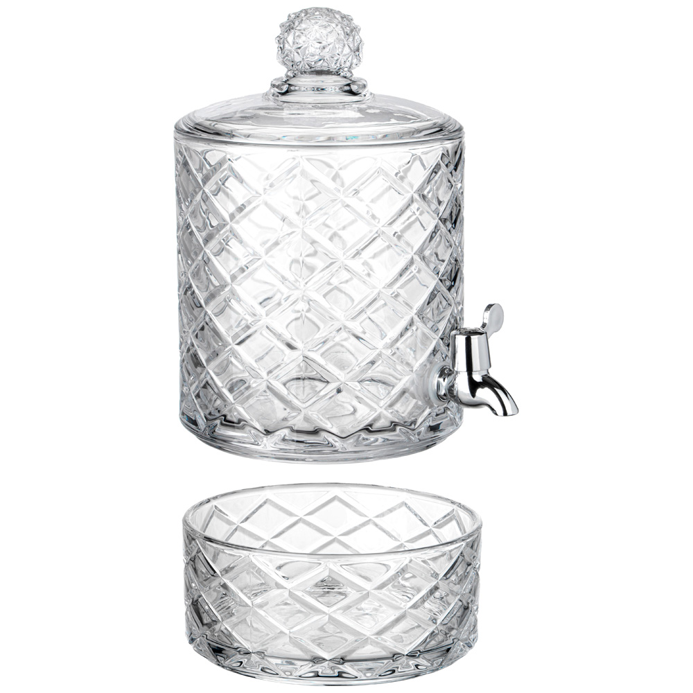 Представляем вашему вниманию наш элегантный диспенсер для напитков ТМ Lefard "DIAMANT"- идеальное сочетание функциональности и эстетики. Этот стильный аксессуар станет настоящим украшением любого стола или мероприятия. Его прозрачная емкость позволяет с легкостью демонстрировать яркие, освежающие напитки, а нижняя часть, предназначенная для свежих фруктов или льда, создает невероятный визуальный эффект и гарантирует непревзойденный вкус.