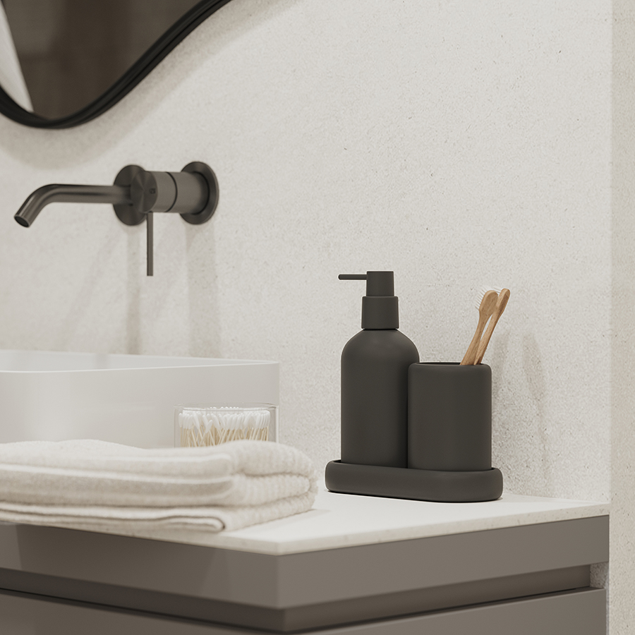 Диспенсер для жидкого мыла Slim – прекрасное решение для поклонников скандинавского стиля и современных интерьеров, где предпочтение отдается простым формам и спокойной цветовой гамме. Выполненный из полирезина, он идеально подходит для использования в местах с повышенной влажностью, сохраняя свой первозданный вид.