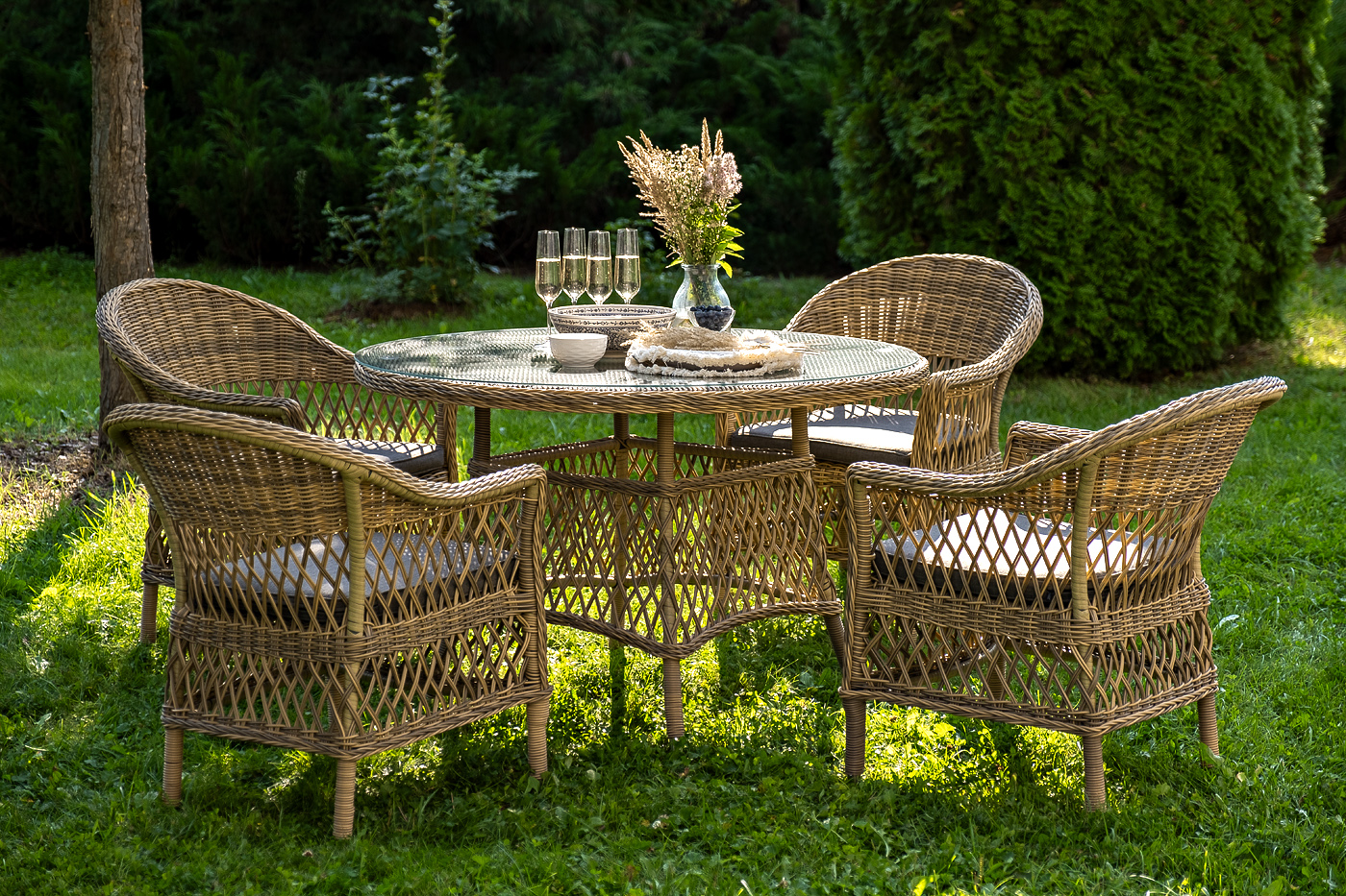 Обеденная группа «Дольче» дает возможность обустроить обеденную зону на открытом дачном участке, веранде или беседке.
