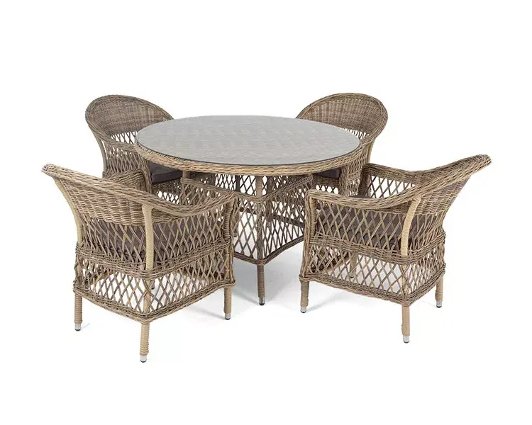 Обеденная группа «Дольче» дает возможность обустроить обеденную зону на открытом дачном участке, веранде или беседке.