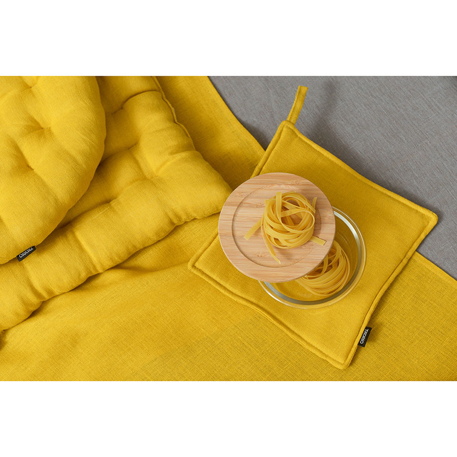 Дорожка на стол из стираного льна горчичного цвета из коллекции Essential, 45х150 см