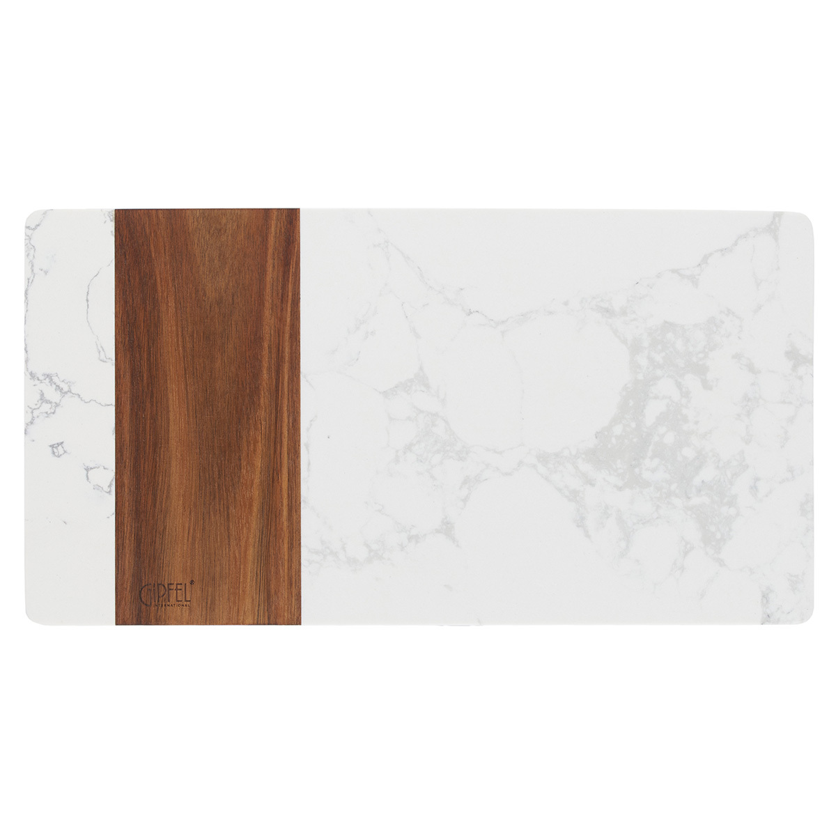 Доска разделочная Gipfel Athens 52025 43x23x1,3 см. Изготовлена из белого мрамора и акации коричневого цвета.