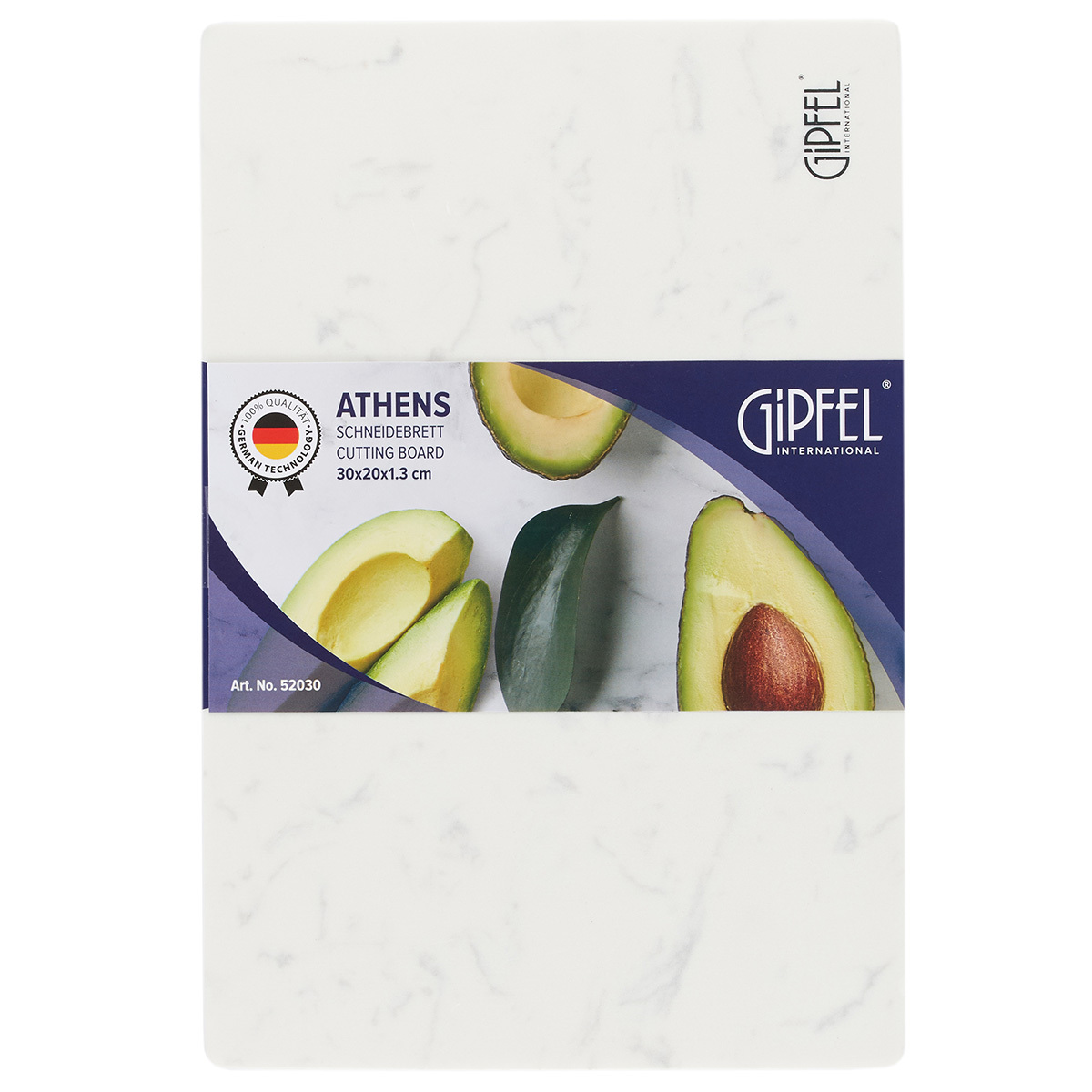 Доска разделочная Gipfel Athens 52030 30x20x1,3 см. Изготовлена из белого мрамора.