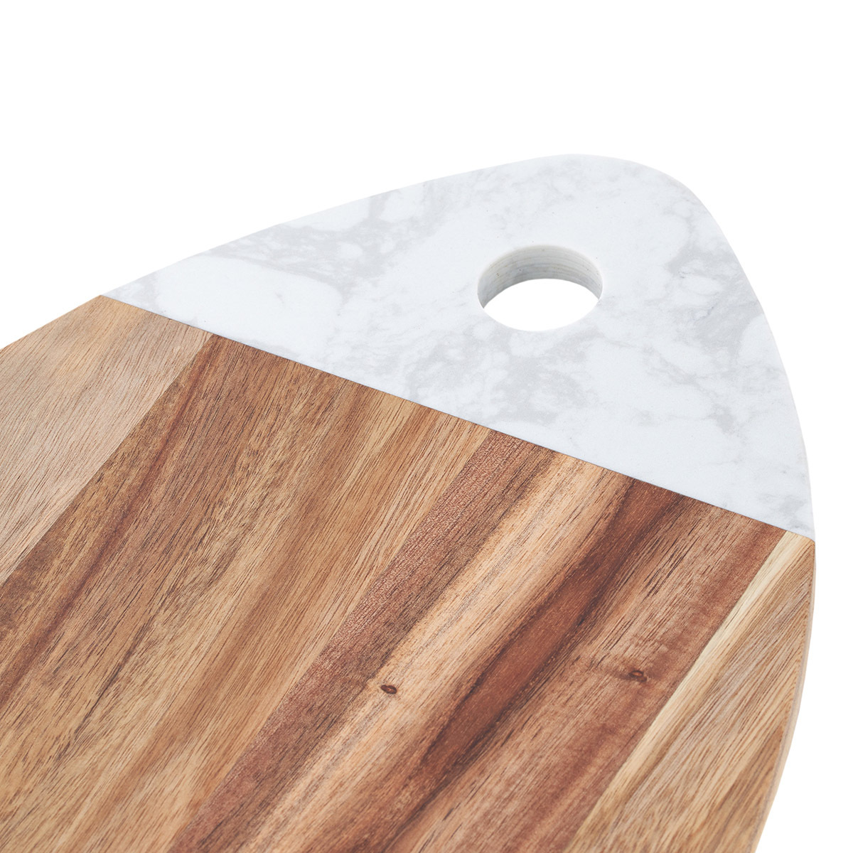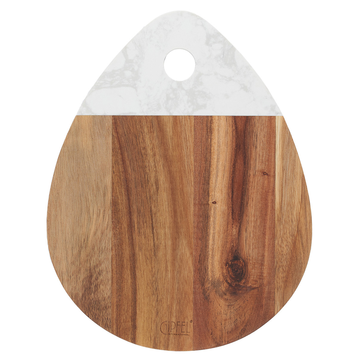 Стильная доска из мрамора и дерева акации впишется в интерьер современной кухни. Имеет гладкую поверхность и утонченную форму капли.