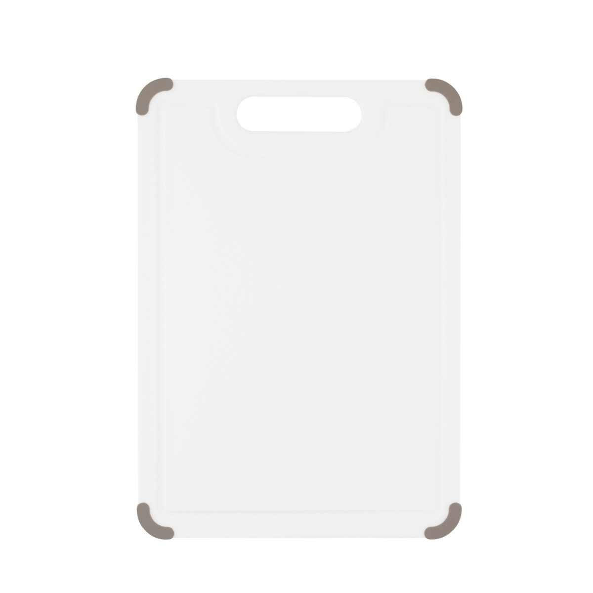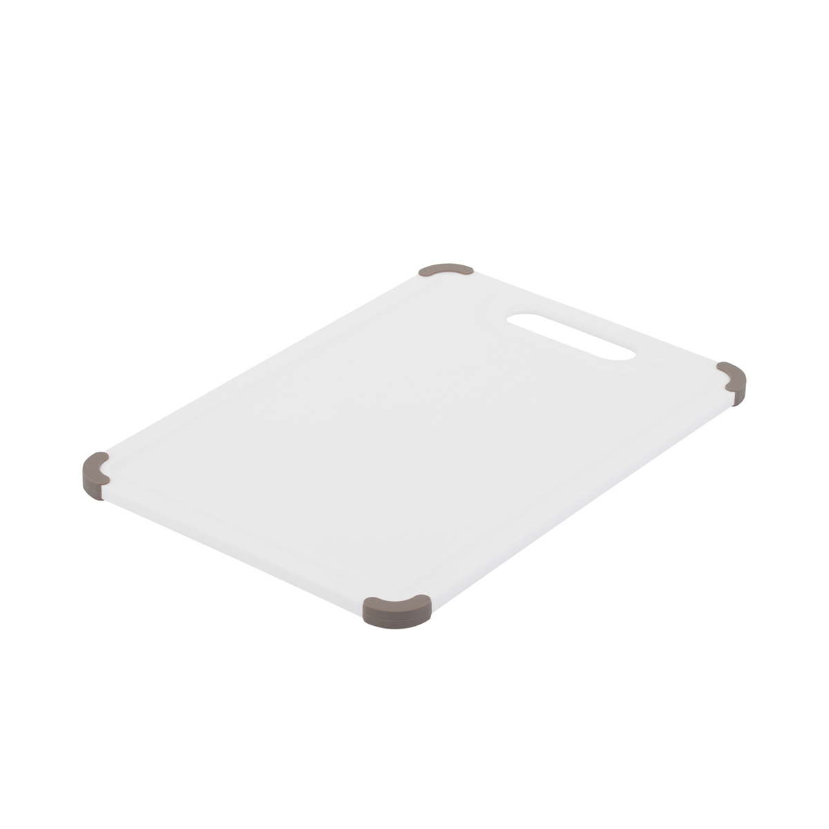 Доска разделочная Gipfel ECO 50426. Доска белого цвета с желобом для удержания жидкости и с серыми силиконовыми ножками против скольжения. Размер доски 40,5х28,5 см. Сделана из пищевого пластика, ножки силиконовые.