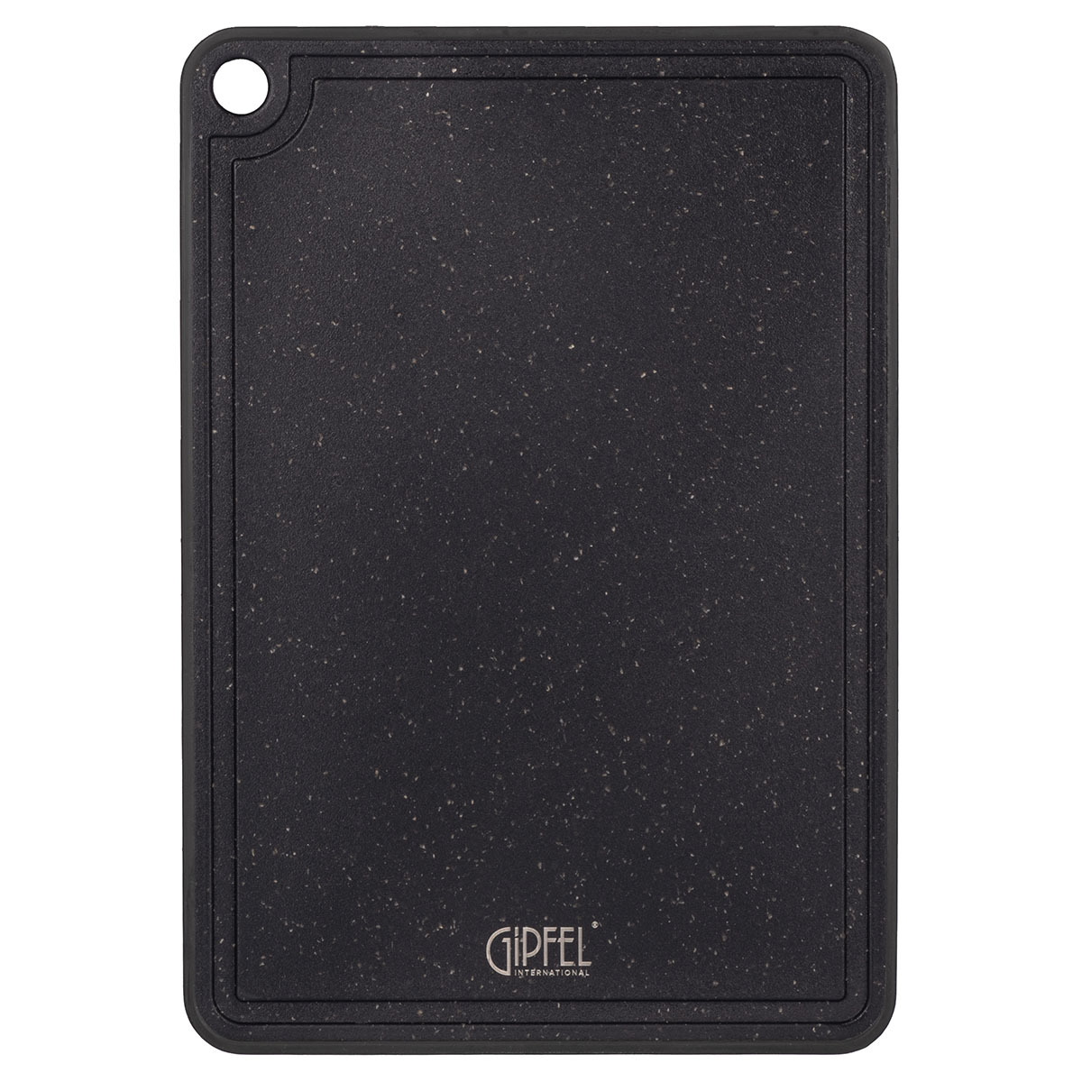 Доска разделочная GIPFEL Granite 51862. Доска черного цвета с желобом для удержания жидкости и с силиконовыми ножками против скольжения. Размер доски 23x16 см. Сделана из пищевого пластика.