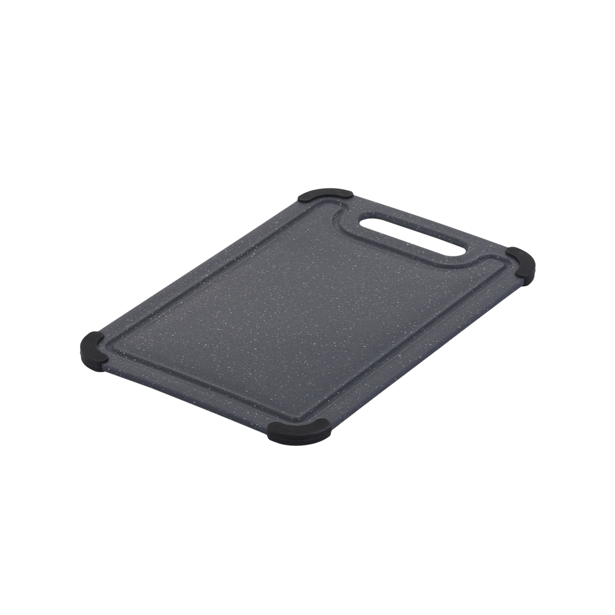Доска разделочная Gipfel MARMO 50421. Доска черного цвета с желобом для удержания жидкости и с силиконовыми ножками против скольжения. Размер доски 30х20 см. Сделана из пищевого пластика, ножки силиконовые.