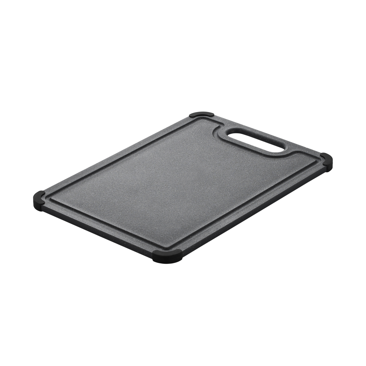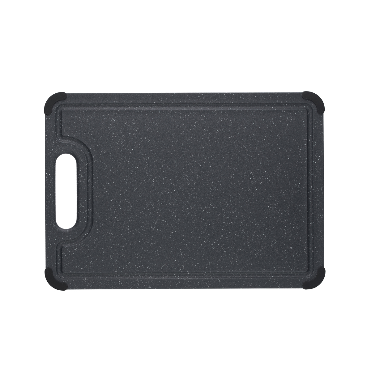 Доска разделочная Gipfel MARMO 50423 с желобом для удержания жидкости, с силиконовыми ножками против скольжения 40,5х28,5 см. Материал: пластик, силикон. Цвет доски: черный гранит, цвет ножек: черный.