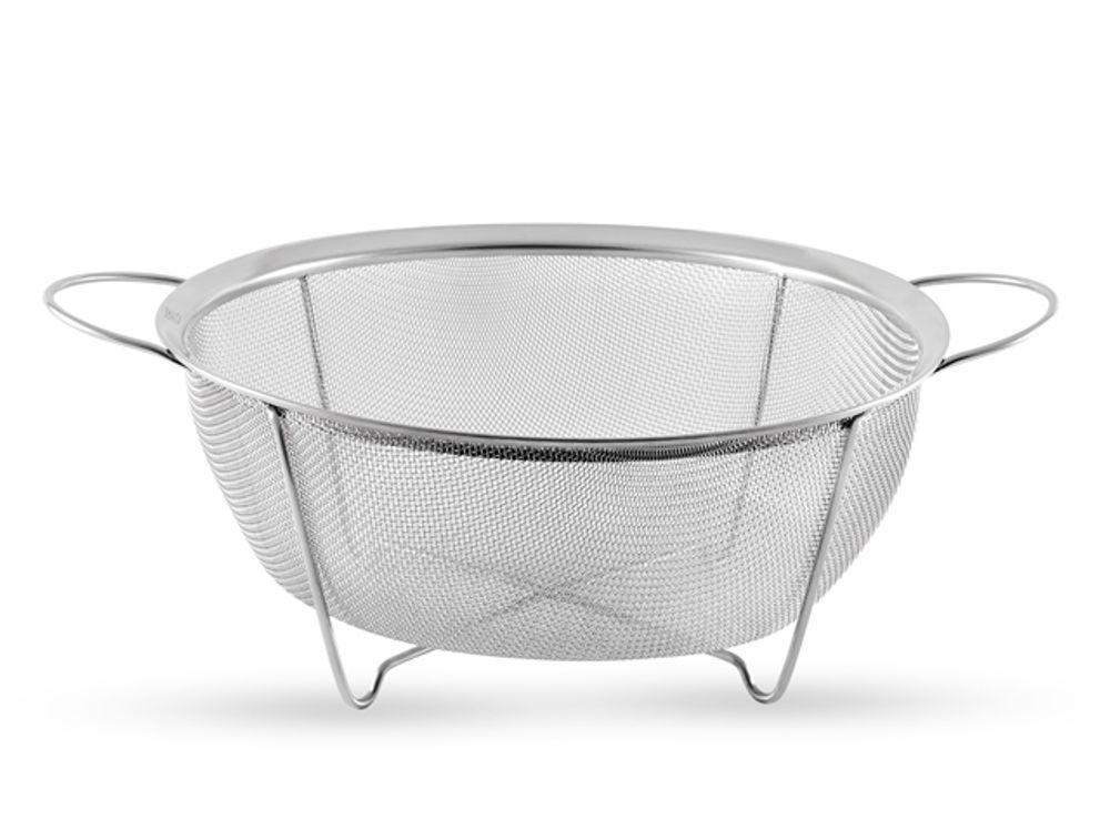 Дуршлаг-сито с ручками Gipfel 5483. Диаметр 25,5 см. Дуршлаг сделан из нержавеющей хирургической стали. Практичные ручки с двух сторон дают возможность использовать дуршлаг с максимальным комфортом. Наличие ножек исключает необходимость держать дуршлаг, можно просто поставить его в раковину и вылить процеживаемый продукт. Не подвержен воздействию ржавчины и коррозии. Прост в эксплуатации, легко моется. Экологически безопасен. Устойчив к посторонним запахам.