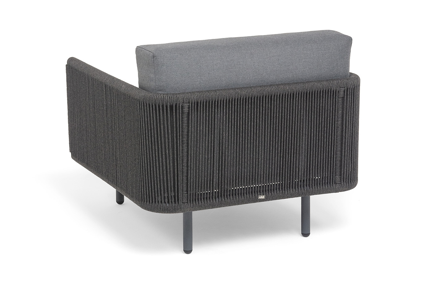Каркас изготовлен из алюминия и покрыт порошковой краской темно-серого цвета (RAL7024), что повышает устойчивость к атмосферным воздействиям. Боковины каркаса вручную оплетены роупом — эластичными синтетическими лентами, выполненными из прочных полиэфирных волокон.