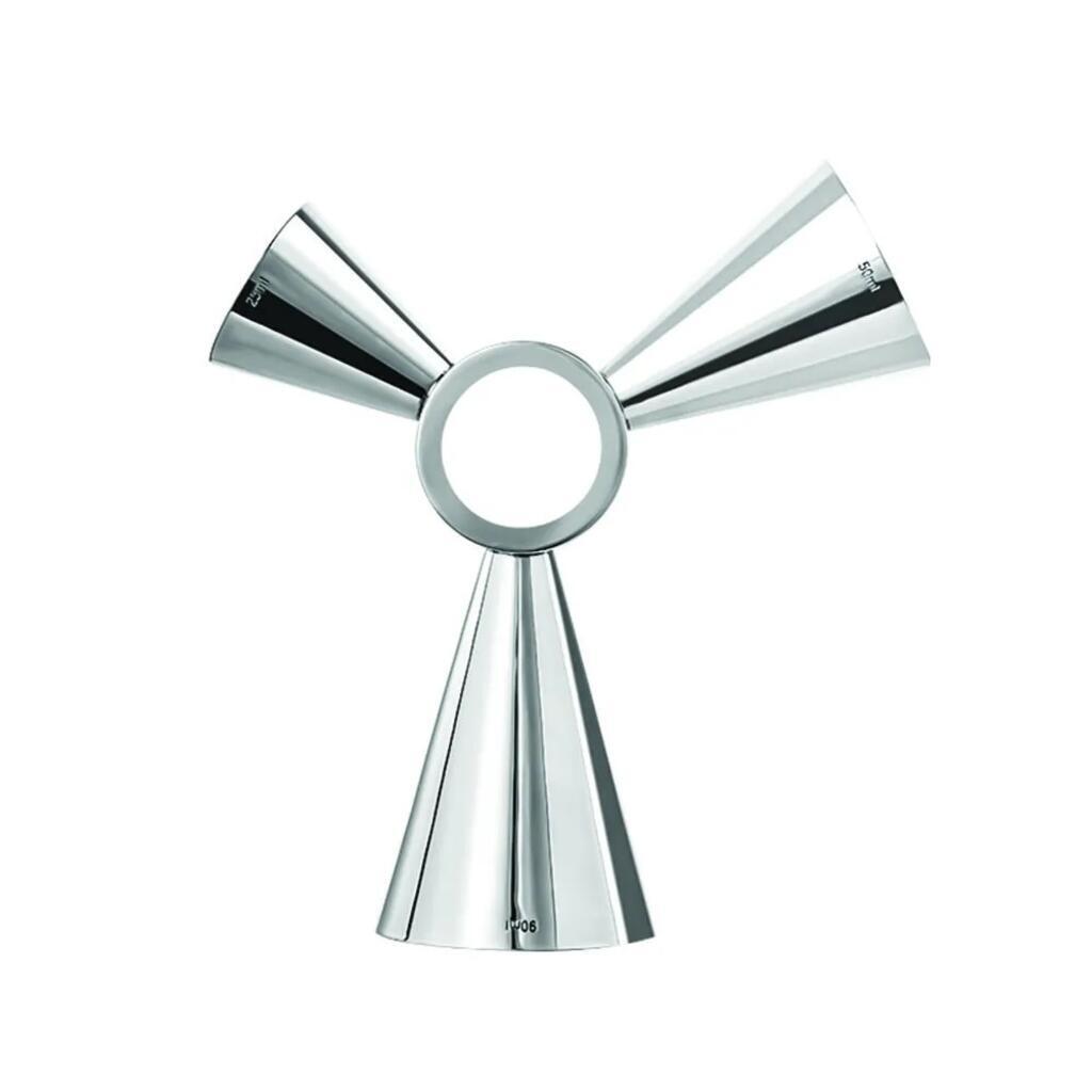 Премиальный тройной барный джиггер из нержавеющей стали и удобным кольцом. Внутри джиггера имеются полосы деления. Емкость№1 - 25/50/75, Емкость№2 - 10/20/30/40, Емкость№3 - 5/10/15/20 мл. Размер 17,5*15,5 см. Диаметр емкостей 3,9/4,7/5,7 см.