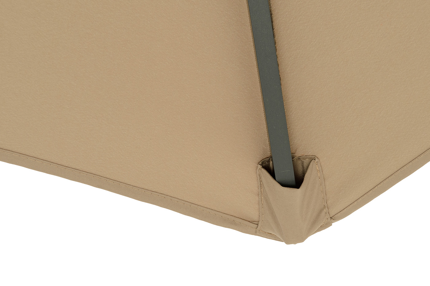 Зонт «Джулия» на центральной алюминиевой опоре с размером купола 3×3 м. Используется для установки во дворах, на пляжах, в парках или на любой открытой территории. Он служит для защиты от солнца, дождя и ветра. Высота от земли до нижнего края купола - 211 см.