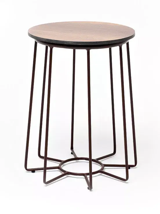 Круглый журнальный столик «Эквадор» каркас изготовлен из алюминия, окрашенного в коричневый (RAL 8016) цвет. Столешница выполнена из высококачественного монолитного компакт-пластика HPL, толщиной 12 мм. Цвет столешницы - «дуб».