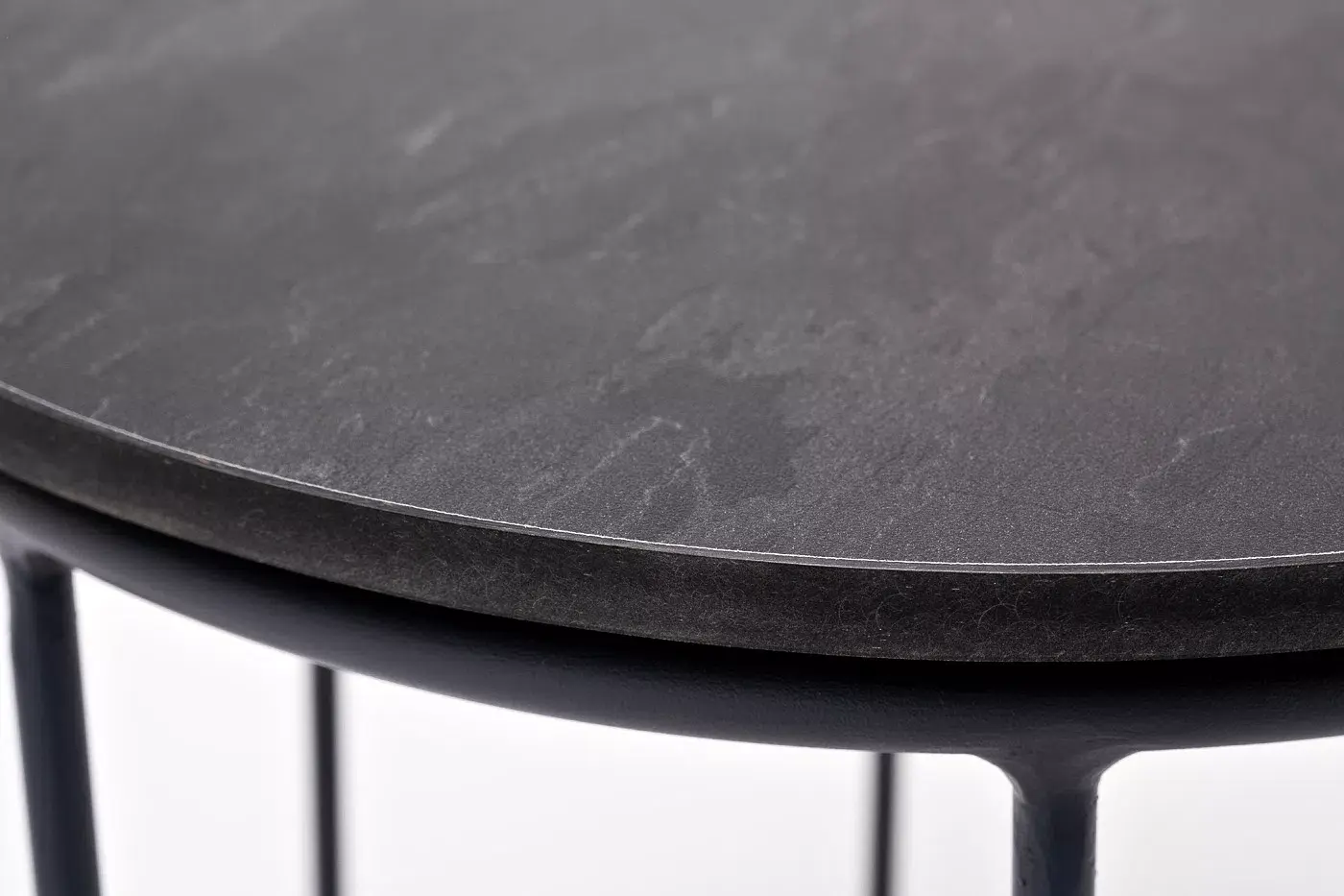 Круглый журнальный столик «Эквадор» каркас изготовлен из алюминия, окрашенного в темно-серый цвет. Столешница выполнена из высококачественного монолитного компакт-пластика HPL, толщиной 12 мм. Цвет столешницы - «серый гранит».