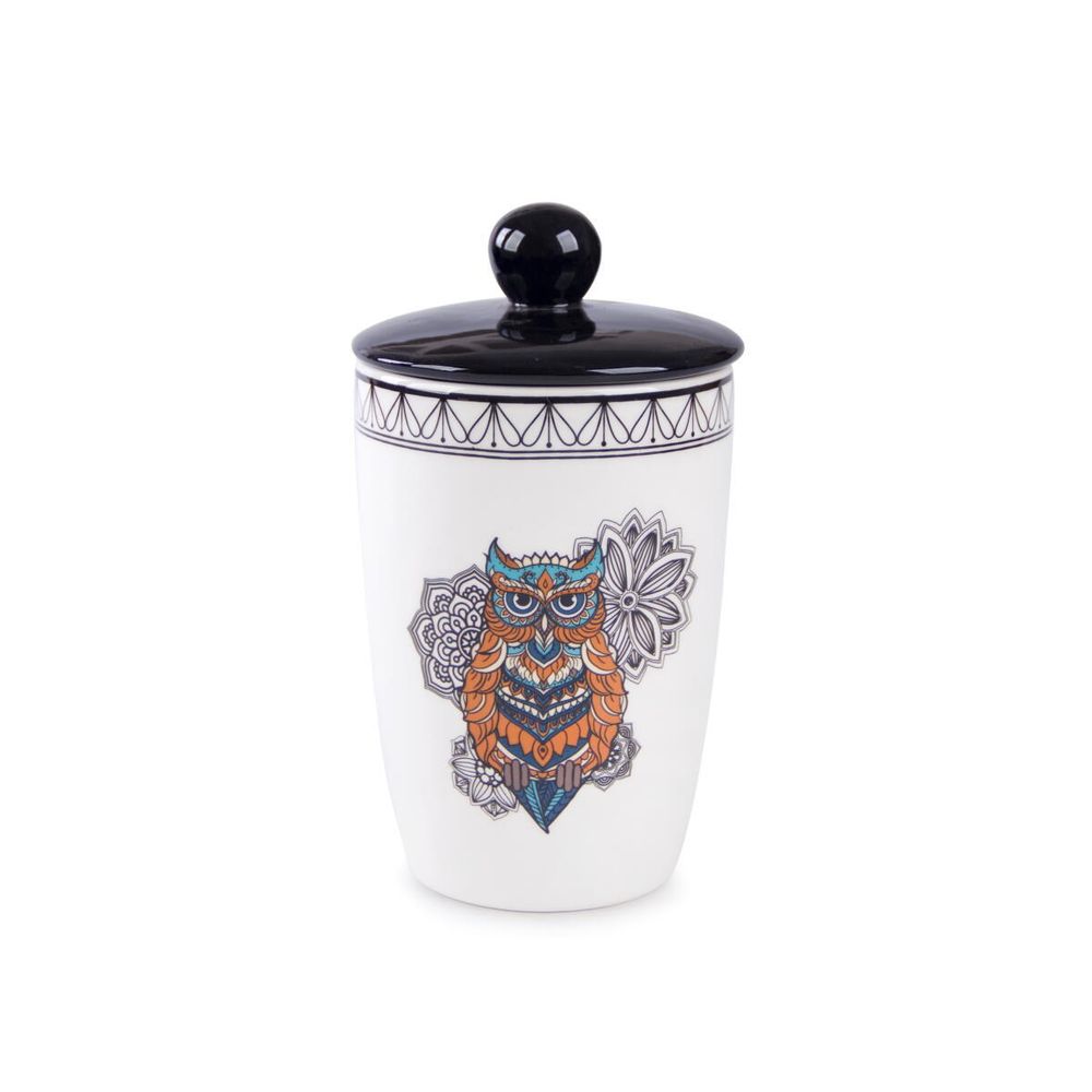 Емкость для хранения продуктов GIPFEL CIVETTA 3970. Стильная керамическая емкость для хранения сыпучих продуктов с изображением совы. Черная крышка в комплекте. Объем 550 мл.