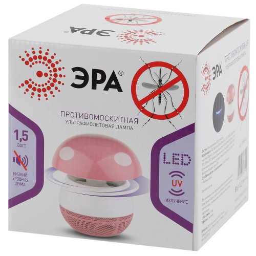 Противомоскитная ультрафиолетовая лампа ЭРА ERAMF-03 обеспечит спокойный и комфортный отдых в летний сезон. И никакие назойливые комары не нарушат Ваше умиротворение. Милый дизайн лампы от насекомых в виде розового грибочка особенно придется по душе детям. Принцип ее действия основан на ультрафиолетовом излучении, которое привлекает комаров. Специальный вентилятор затягивает насекомых внутрь, оставляя только тишину и приятные воспоминания об отдыхе. Лампа безопасна для детей, легка в эксплуатации и достаточно компактна, чтобы взять ее с собой. Лампа против комаров работает от сети и особенно удобна в использовании в дачным домиках. С ультрафиолетовой лампой ЭРА гарантирован спокойный отдых без назойливых насекомых.