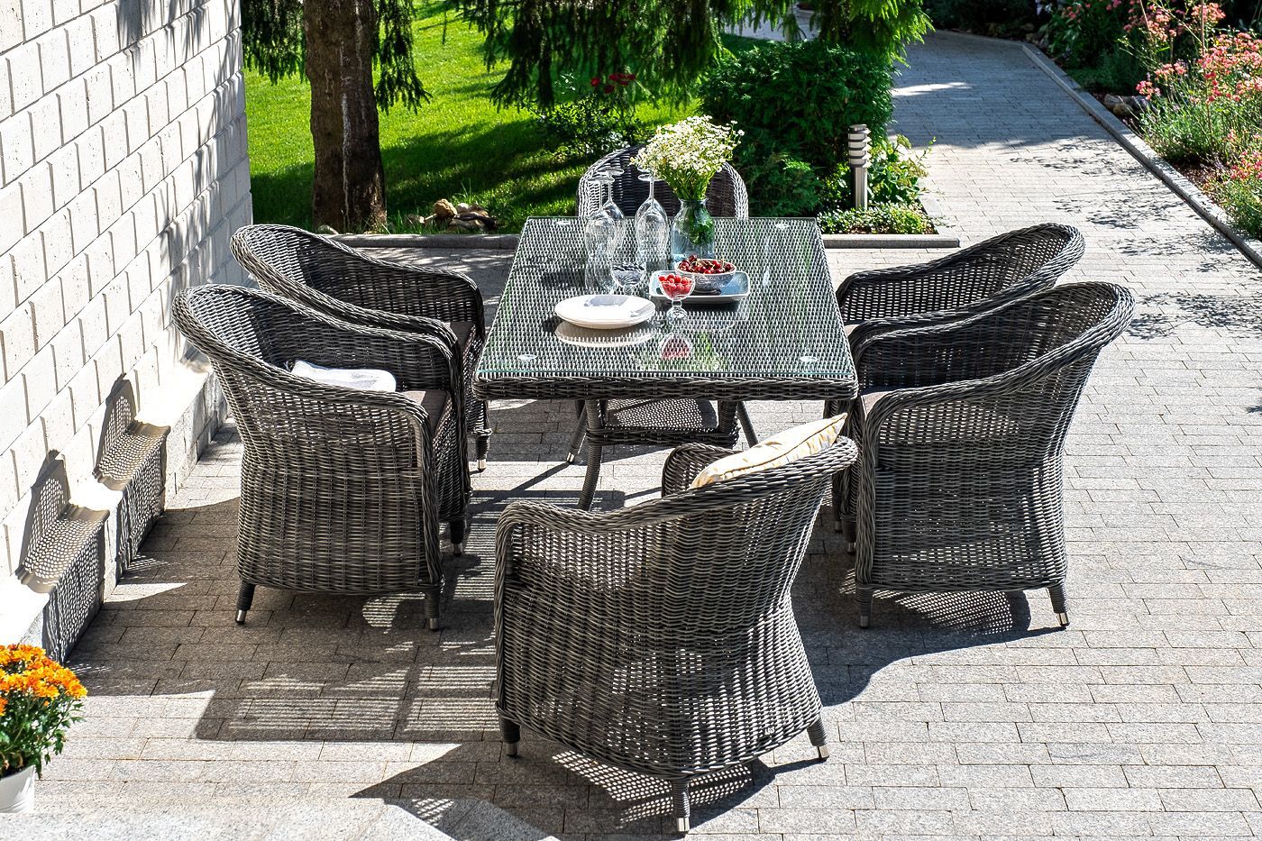 Садовая обеденная группа «Эспрессо» для шестерых персон в цвете графит.