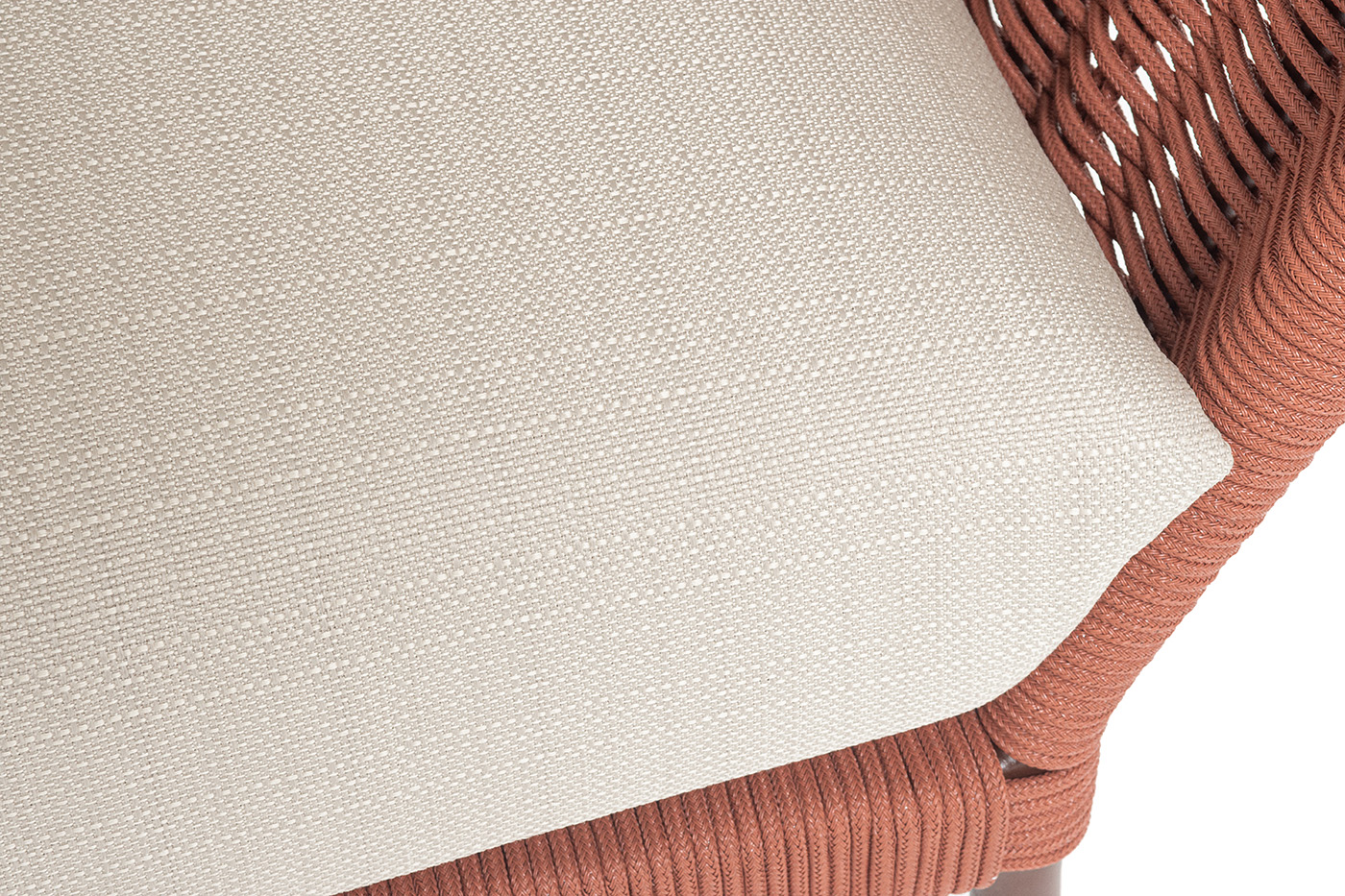 "Фиджи" диван 3-местный плетеный из роупа, каркас алюминий коричневый (RAL8016) муар, роуп красный (8372) круглый tex, ткань Mossle бежевая