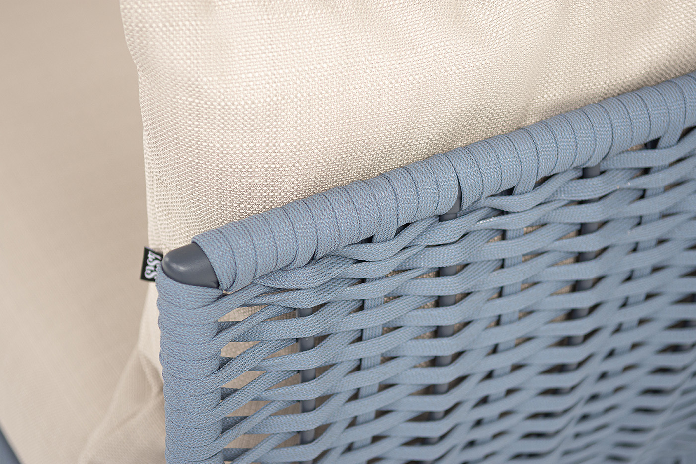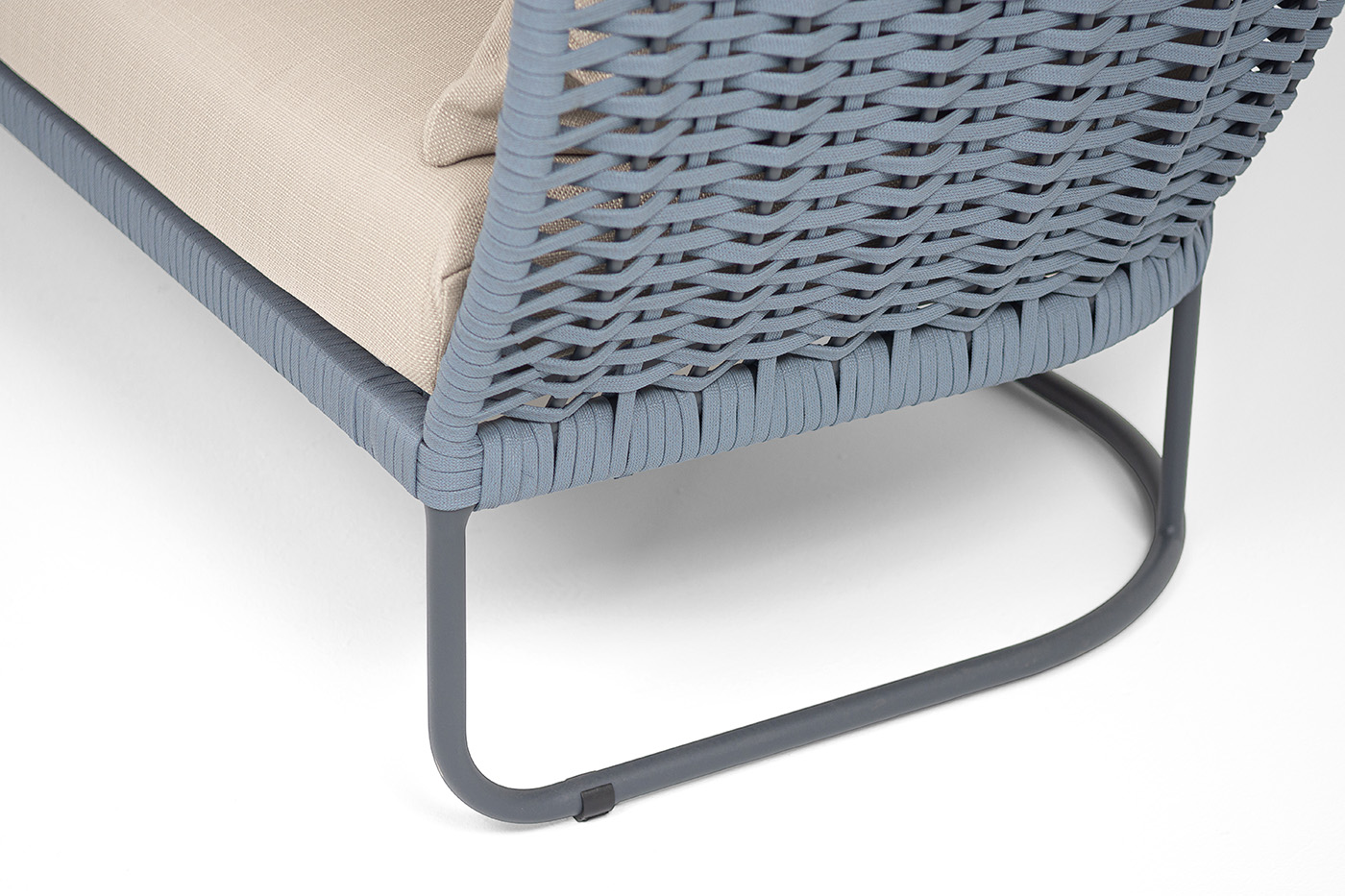 "Фиджи" диван 3-местный плетеный из роупа, каркас алюминий темно-серый (RAL7024) муар, роуп синий (KT18-0014) 15 мм tex, ткань Mossle бежевая