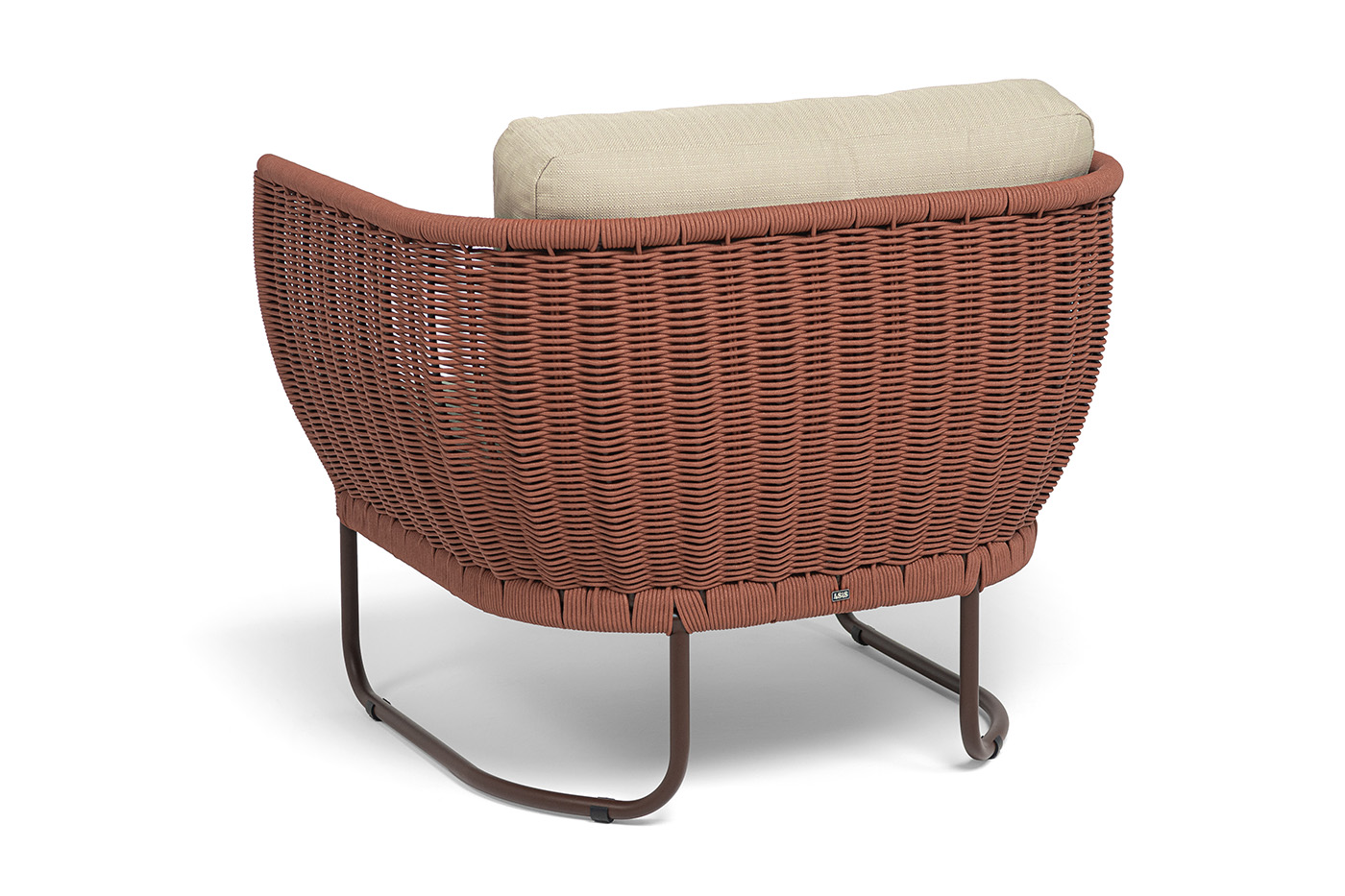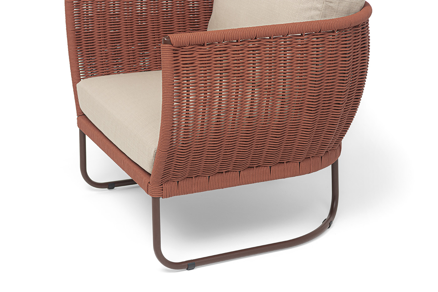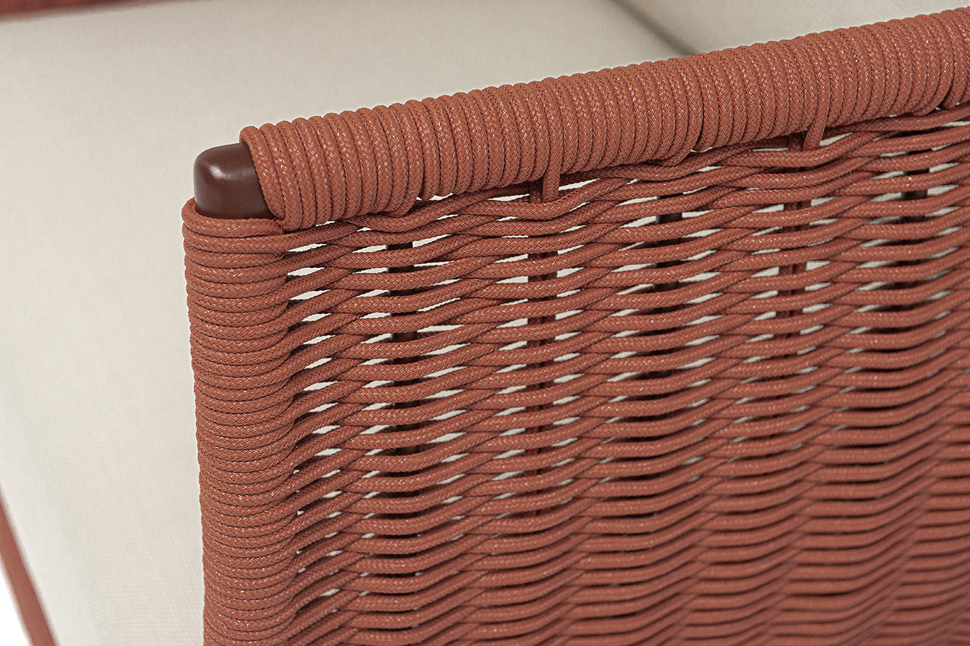 Плетение боковины каркаса вручную оплетены роупом — эластичными синтетическими лентами из высокопрочных полиэфирных волокон. Оплетка - круглый tex, что придает креслу изысканный и оригинальный внешний вид.