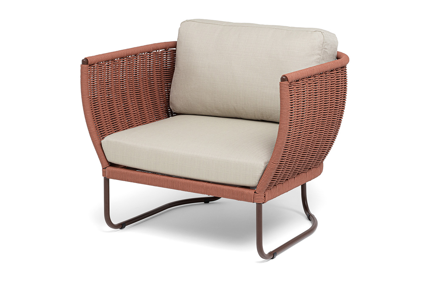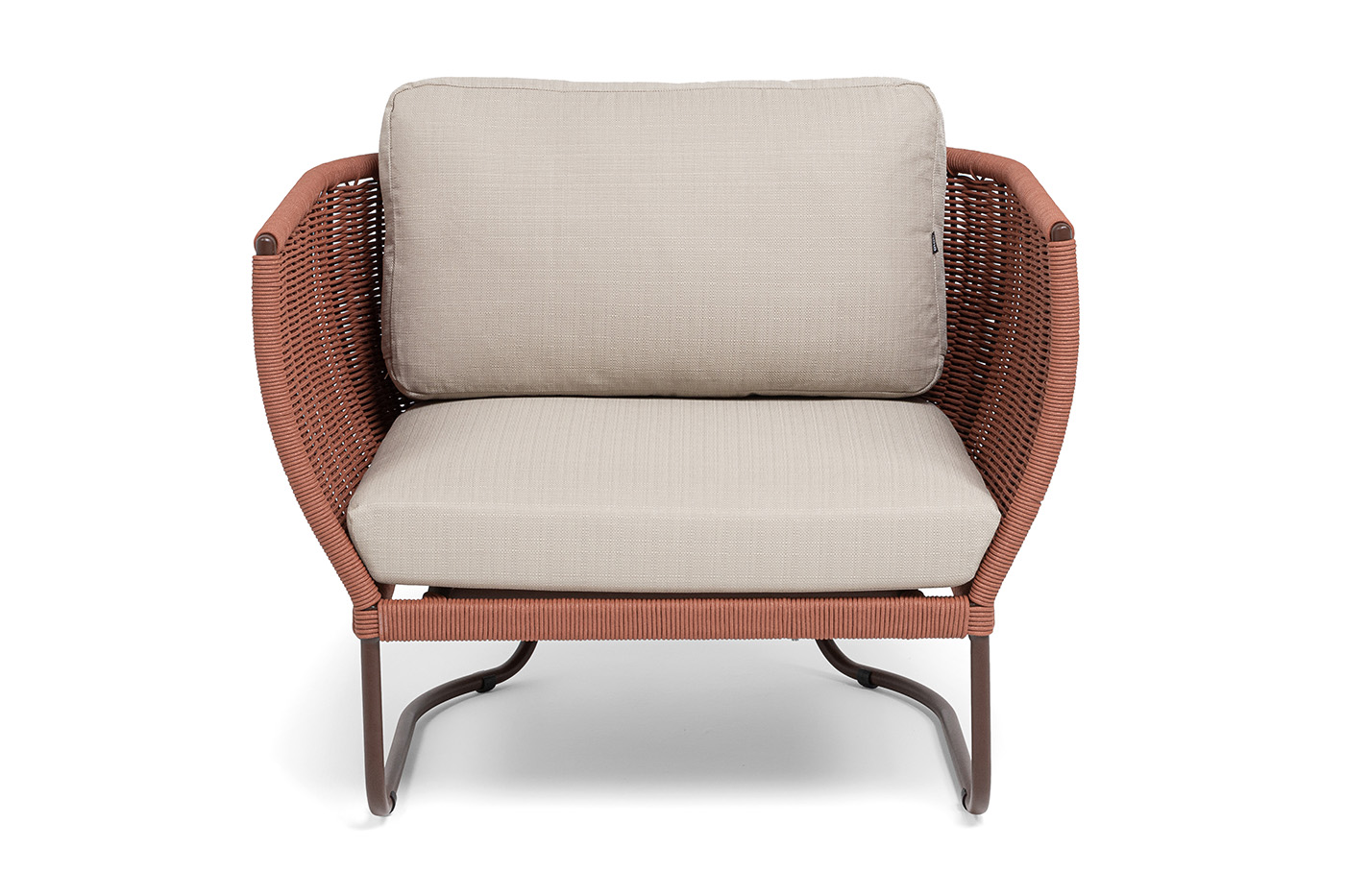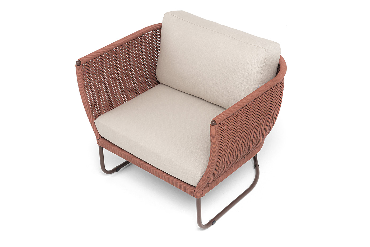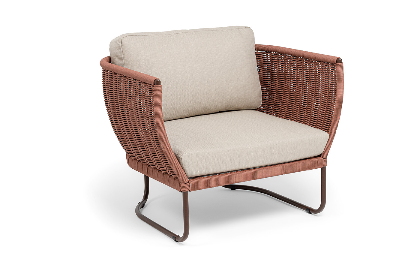 Плетение боковины каркаса вручную оплетены роупом — эластичными синтетическими лентами из высокопрочных полиэфирных волокон. Оплетка - круглый tex, что придает креслу изысканный и оригинальный внешний вид.