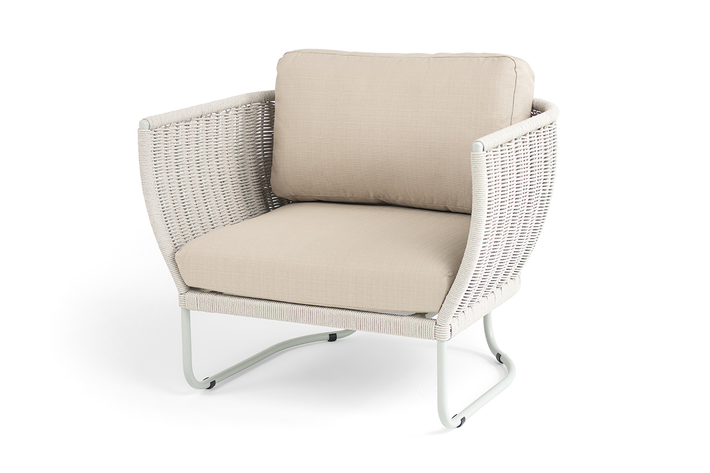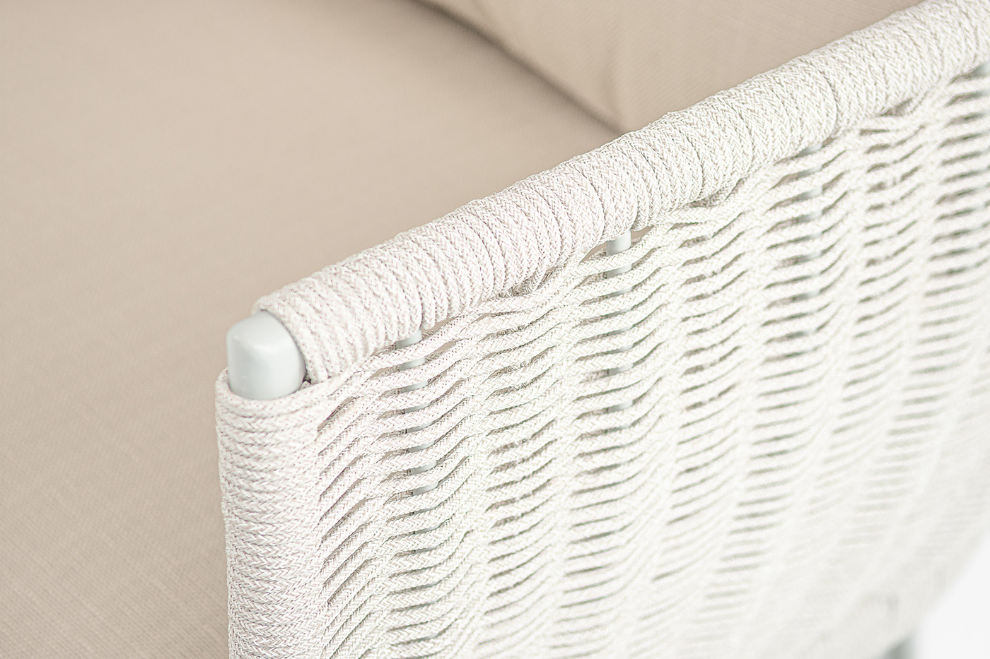 Плетение боковины каркаса вручную оплетены роупом — эластичными синтетическими лентами из высокопрочных полиэфирных волокон. Оплетка - круглый tex, что придает креслу изысканный и оригинальный внешний вид.