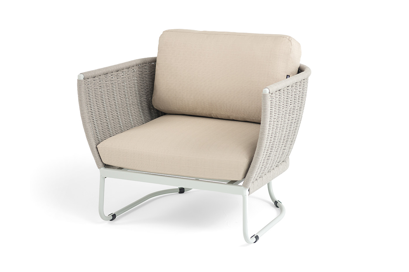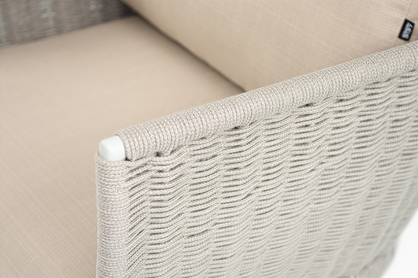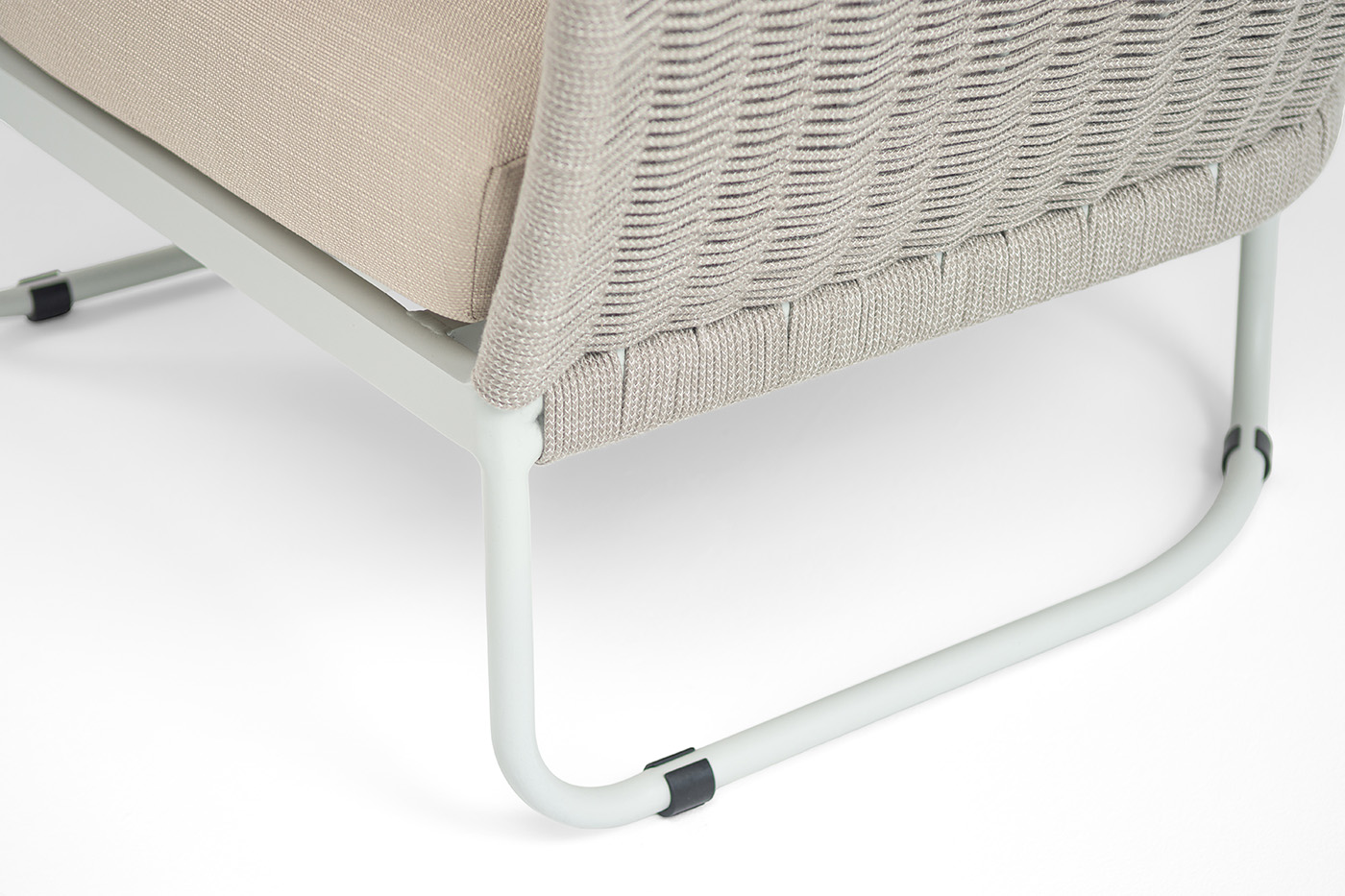 Плетение боковины каркаса вручную оплетены роупом — эластичными синтетическими лентами из высокопрочных полиэфирных волокон. Оплетка - серый меланж, что придает креслу изысканный и оригинальный внешний вид.