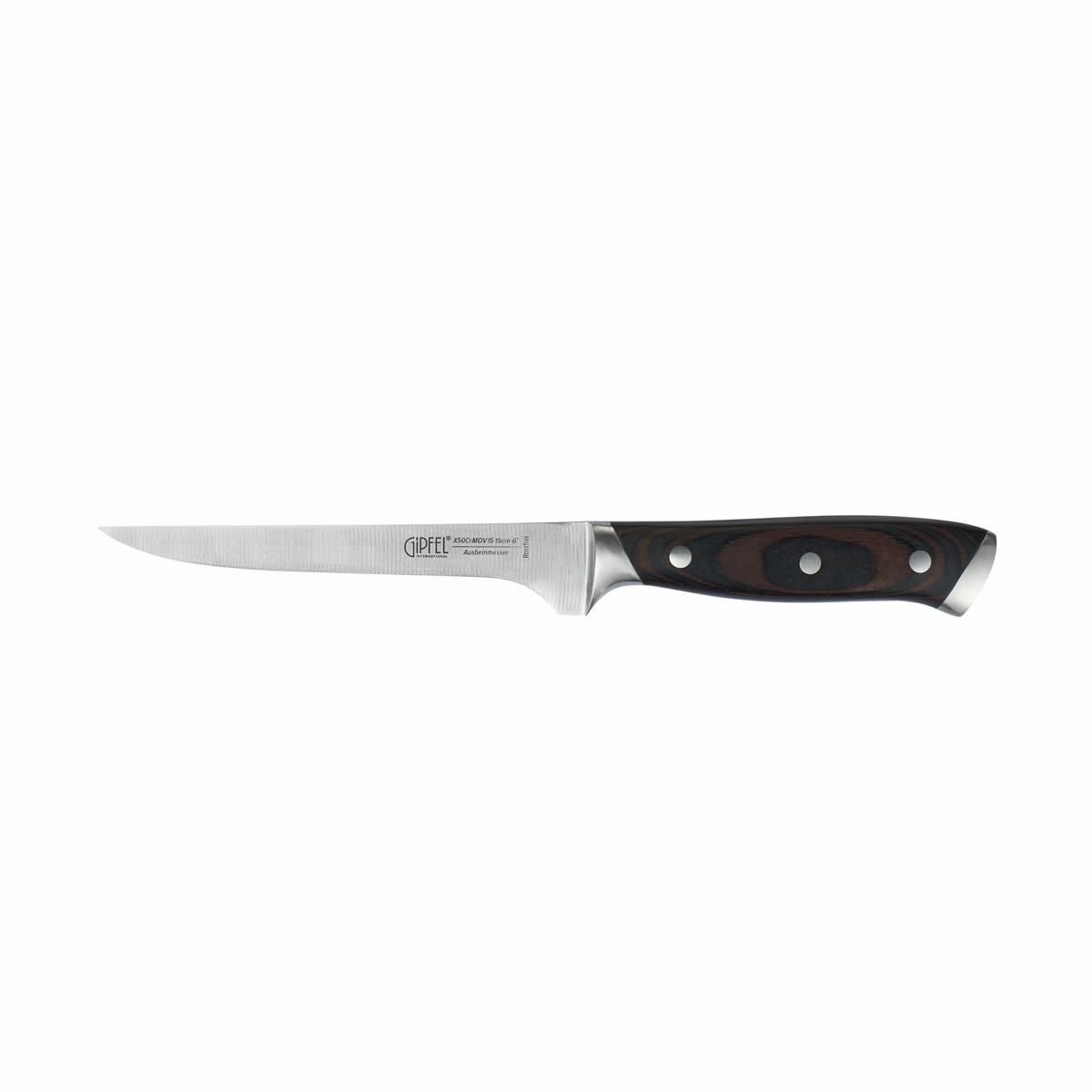 Нож филейный MAGESTIC Gipfel 6971. Длина лезвия 15 см. Лезвие сделано из стали X50CrMoV15. Ручка сделана из стали и древеснослоистого пластика. Толщина лезвия 2,5 мм.
