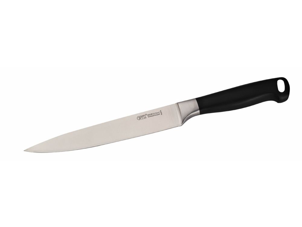 Серия ножей PROFESSIONAL LINE неспроста получила свое название – качество данных ножей делает их выбором профессиональных поваров. Ножи PROFESSIONAL LINE отличаются от других, прежде всего, материалом лезвия, которым является сталь марки 5CR15MOV. Она является отличным сочетанием остроты, гибкости и прочности, то есть именно тем, чем и должен выделяться идеальный кухонный нож. Добавьте к этому удобную бакелитовую рукоятку, которая не выскальзывает при резке, и вы получите настоящие профессиональные ножи, которыми теперь можно укомплектовать и вашу кухню! Длина данного ножа составляет 15 см.