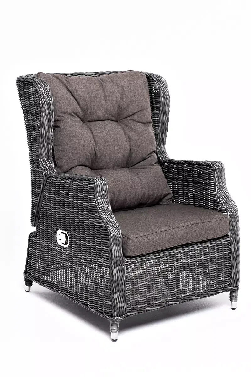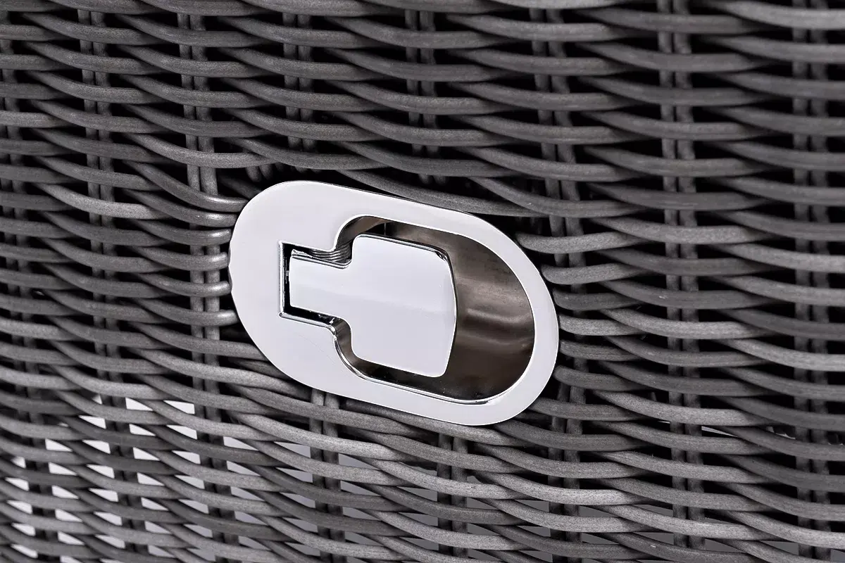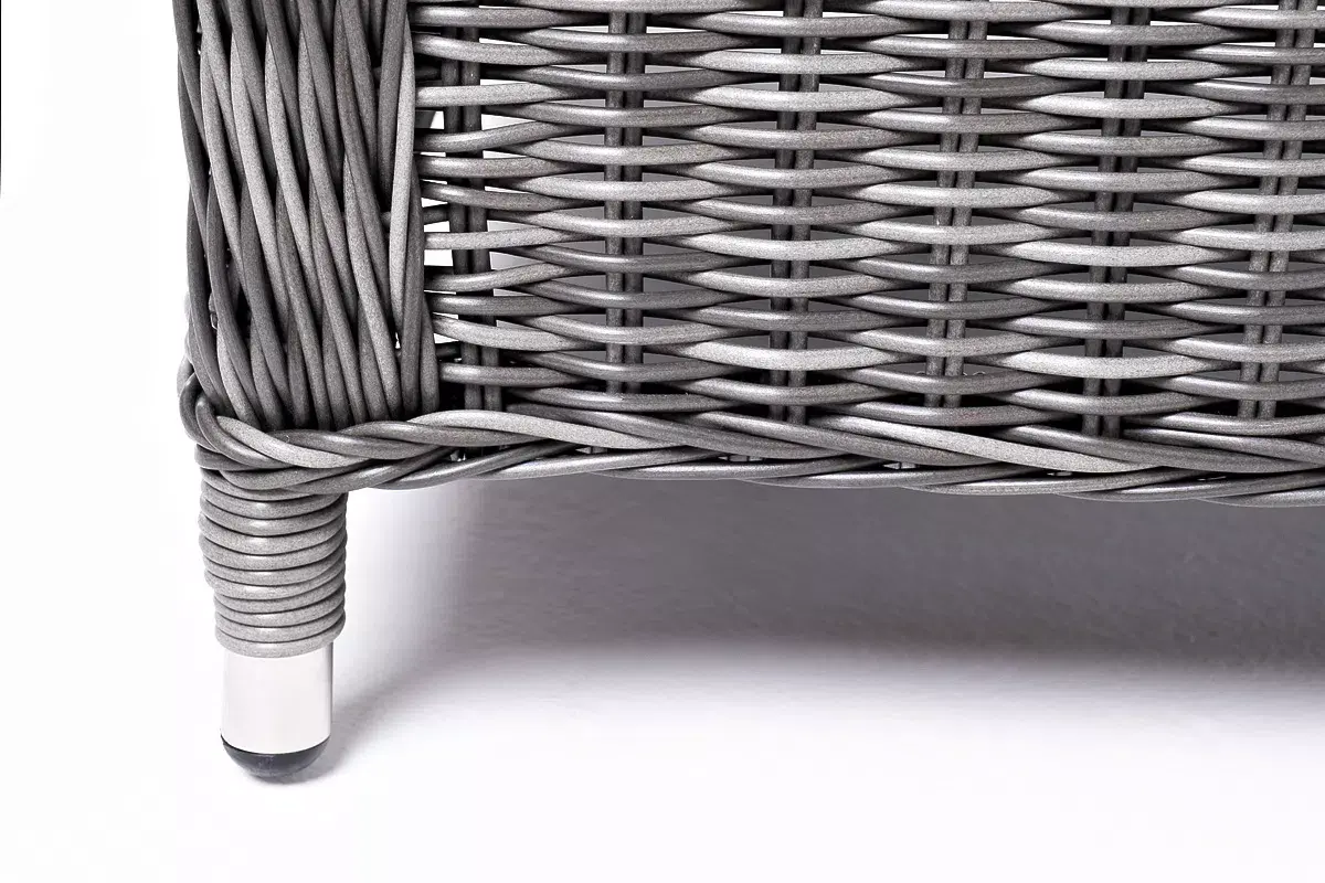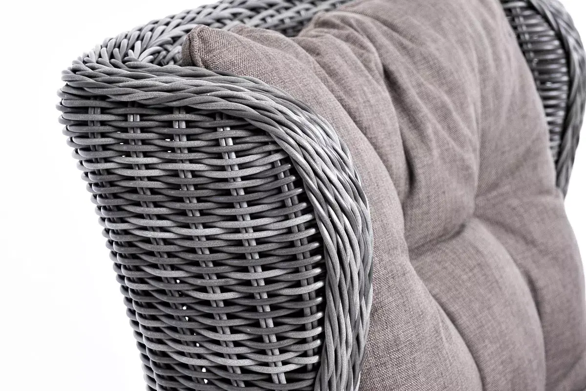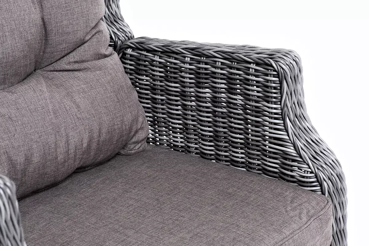 В основе мебели находится алюминиевый каркас высокой прочности, оплетенный круглым искусственным ротангом. Представлена в графитовом оттенке.