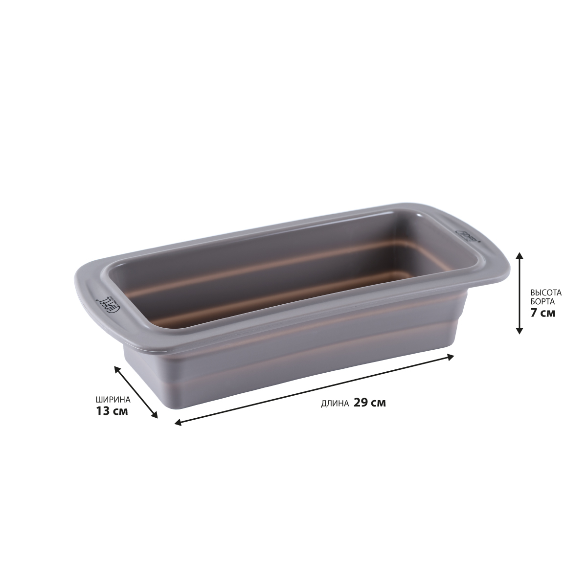 Форма для выпечки изготовлена из пищевого силикона высочайшего качества, материал изделия отличается высокой плотностью и безопасен для использования при высоких температурах. Внутри стенок формы скрыта металлическая опора, что позволяет удобно складывать и хранить изделие после использования. Прекрасно подойдет для выпекания хлеба и кексов.
