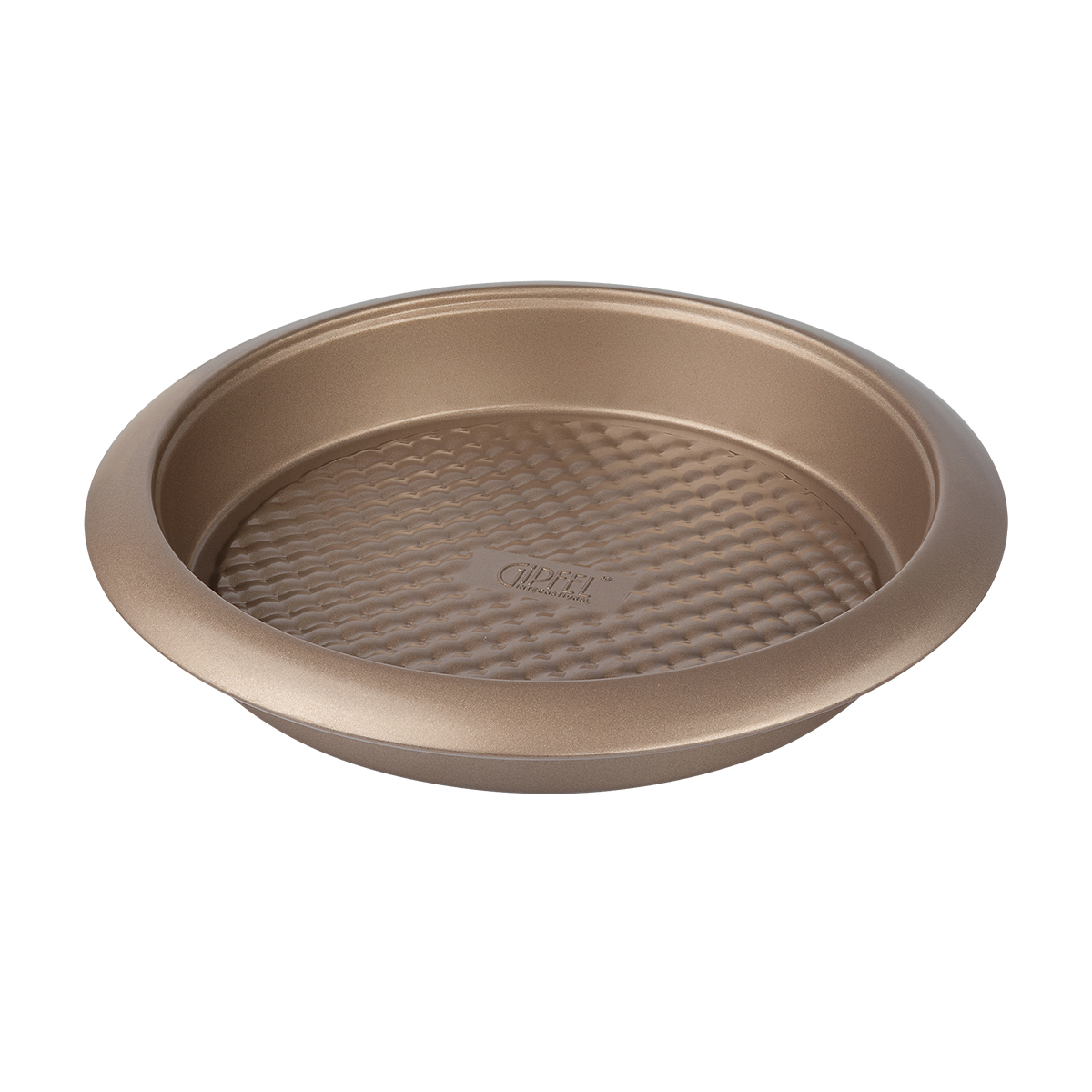 Круглая форма для выпечки изготовлена из углеродистой стали, с рельефным дном и антипригарным покрытием Ilag special. Этот материал быстро нагревается, равномерно распределяет тепло, безопасен для здоровья.