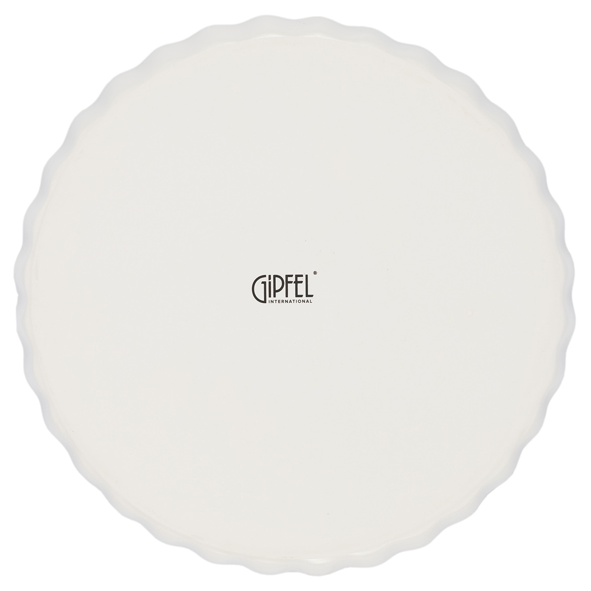 Форма для запекания Gipfel Bianco 50396 объемом 1300 мл, диаметром 26 см и высотой бортиков 3,8 см изготовлена из фарфора.